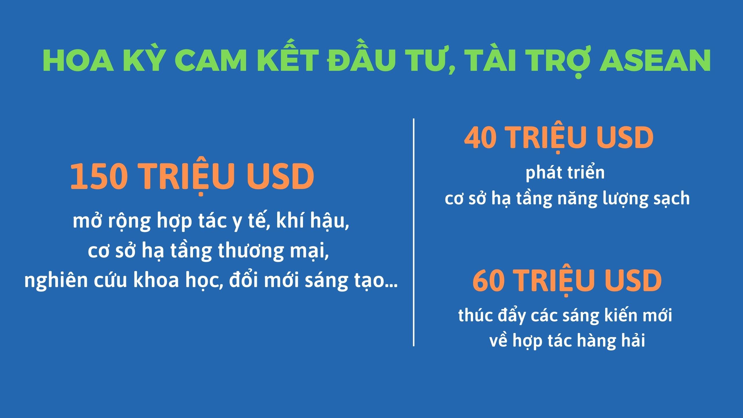 Một trong những định hướng hợp tác ASEAN-Hoa Kỳ được Thủ tướng Phạm Minh Chính nhấn mạnh là ưu tiên khôi phục dòng chảy thương mại, đầu tư. Thủ tướng khẳng định, Việt Nam sẽ hỗ trợ tốt nhất các nhà đầu tư, doanh nghiệp Hoa Kỳ nhanh chóng mở rộng kinh doanh tại Việt Nam, kết nối với thị trường ASEAN đầy tiềm năng. Thủ tướng cũng bày tỏ mong muốn, Hoa Kỳ thúc đẩy hợp tác trong khuôn khổ Đối tác Mekong-Hoa Kỳ, góp phần bảo đảm khu vực phát triển hài hòa, đồng đều và bền vững.
