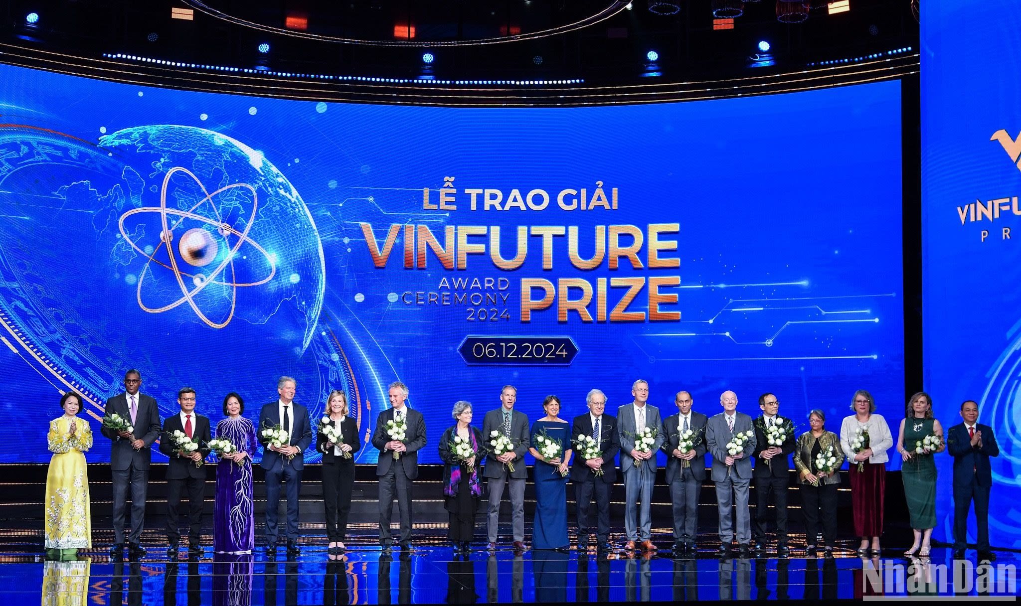 Thủ tướng Phạm Minh Chính trao Giải thưởng Chính VinFuture 2024 cho các nhà khoa học đạt giải. (Ảnh: THÀNH ĐẠT)
