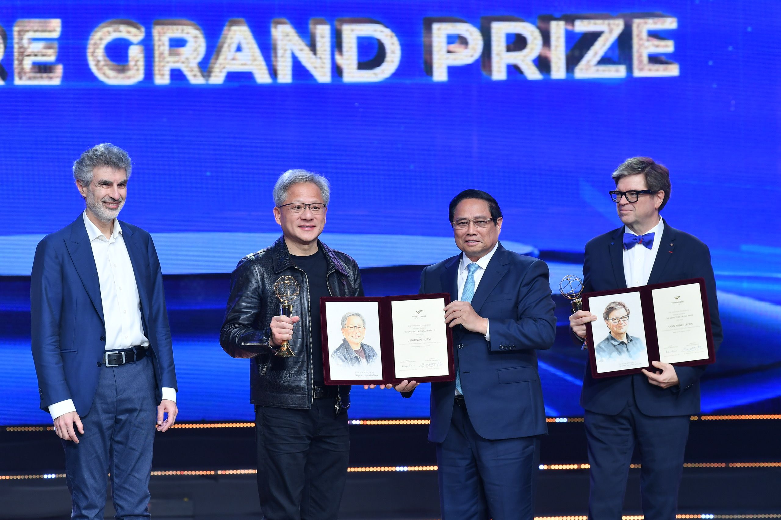 Thủ tướng Phạm Minh Chính trao Giải thưởng Chính VinFuture 2024 cho ông Jen-Hsun Huang, Chủ tịch Tập đoàn NVIDIA.. Ảnh: THÀNH ĐẠT