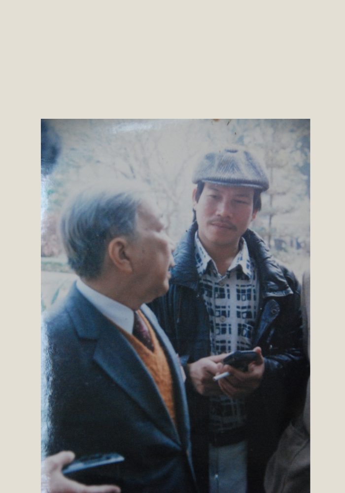 Nhà báo Xuân Ba với Chủ tịch Quốc hội Nông Đức Mạnh.