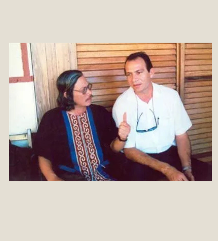 Nhà báo Xuân Ba trao đổi với đồng nghiệp Cuba trong một chuyến tháp tùng Tổng Bí thư Lê Khả Phiêu thăm Cuba.
