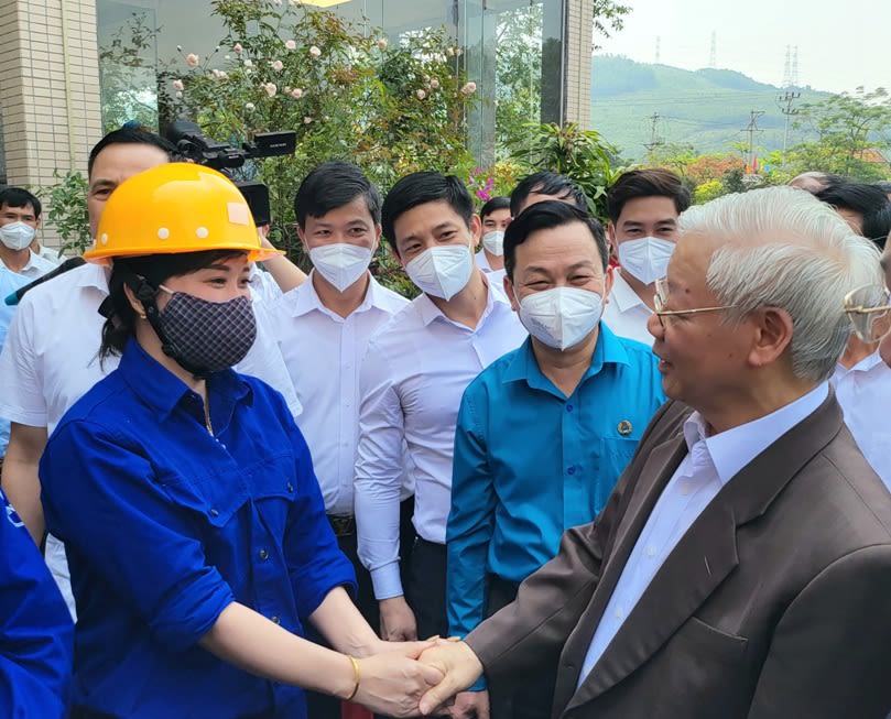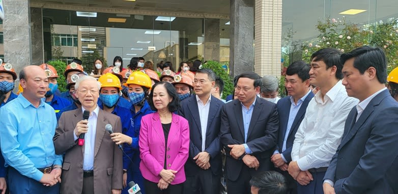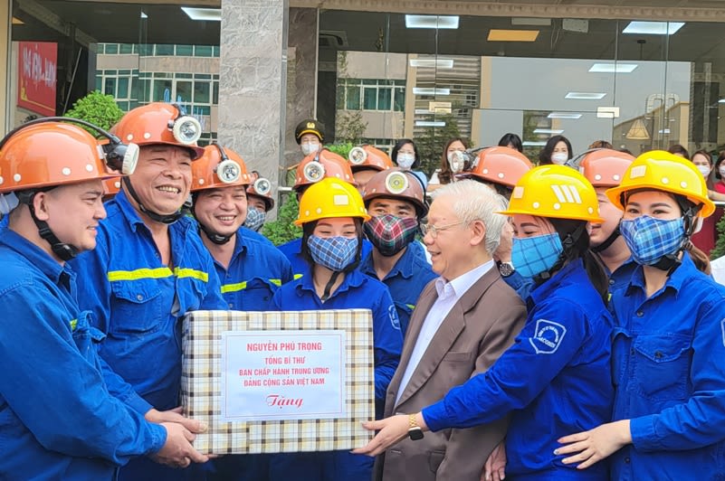 Tổng Bí thư Nguyễn Phú Trọng nói chuyện và tặng quà cho cán bộ, công nhân Công ty Cổ phần than Vàng Danh