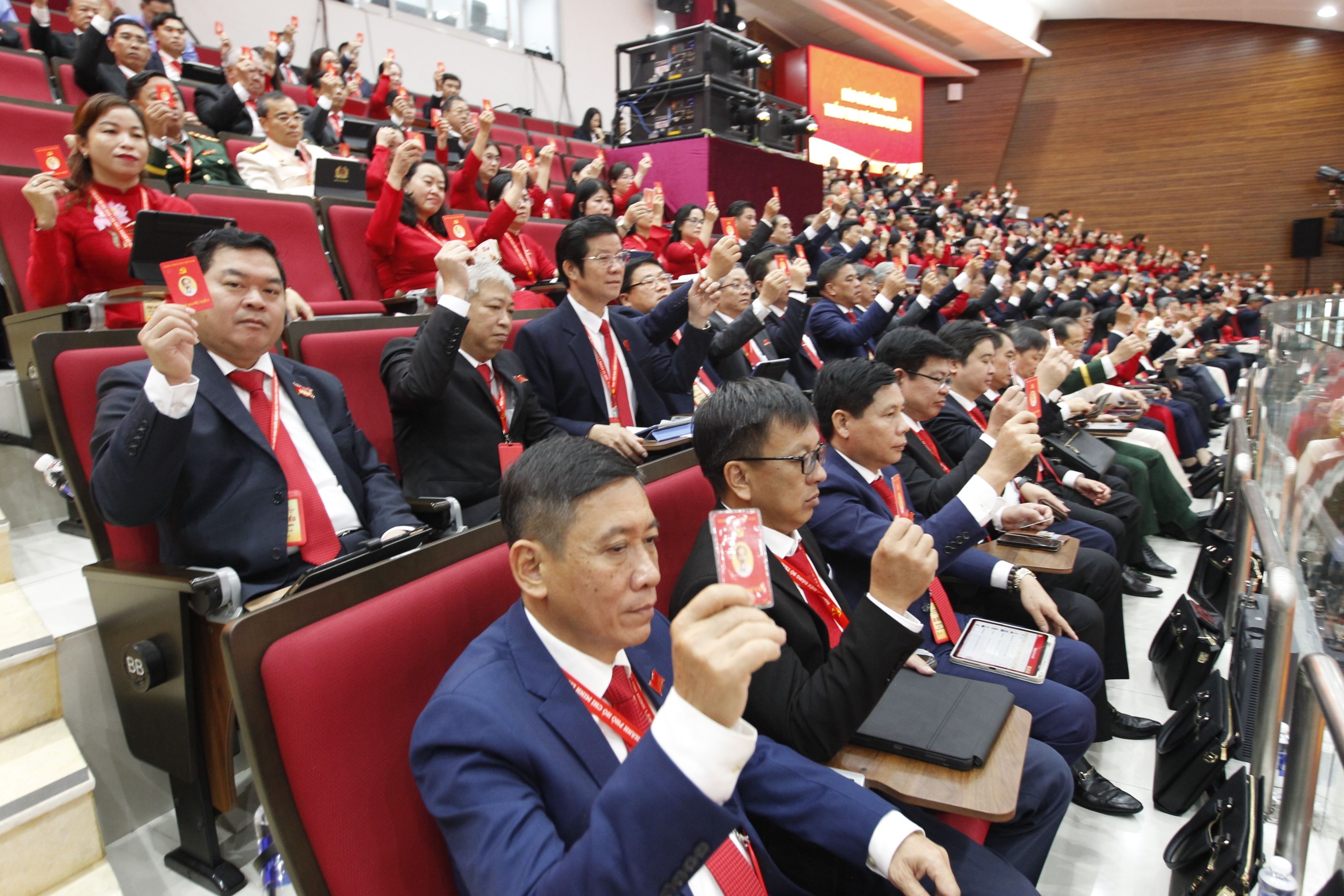 Các đại biểu biểu quyết thông qua phương hướng nhiệm vụ nhiệm kỳ 2025-2030.
