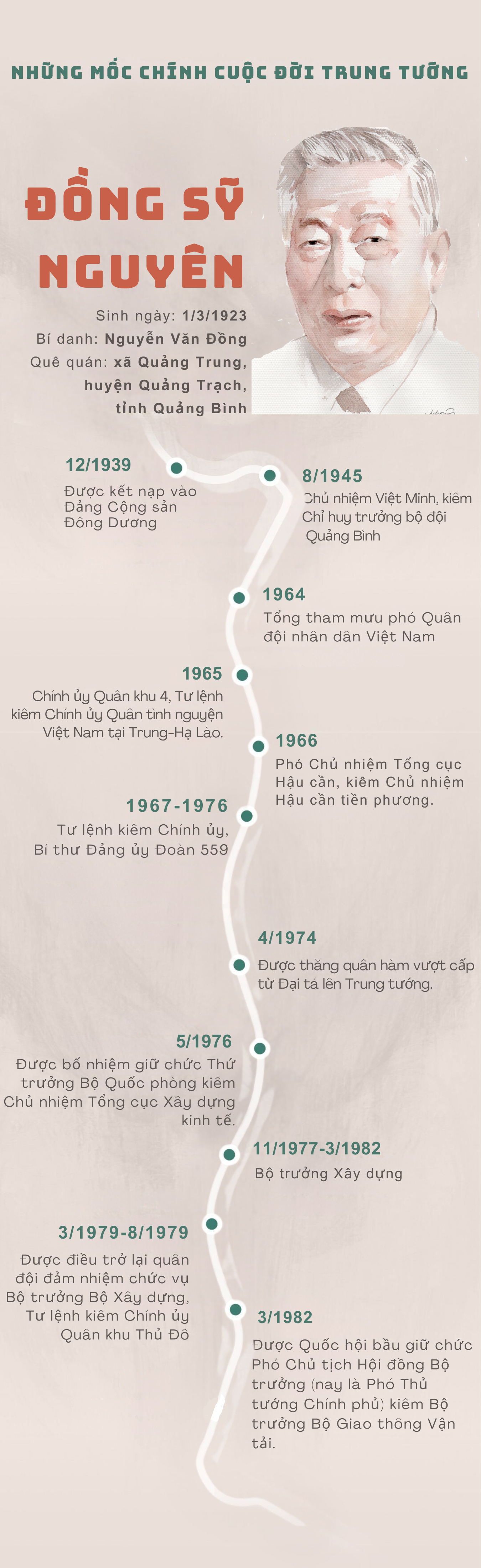 Hơn 80 năm hoạt động cách mạng, đồng chí Đồng Sỹ Nguyên luôn là người chiến sĩ cộng sản tài năng, kiên cường, có đóng góp quan trọng trên nhiều lĩnh vực, từ chính trị, quân sự đến kinh tế, xã hội. Trong đó, gần 10 năm trên cương vị Tư lệnh Đoàn 559 - Bộ đội Trường Sơn, đồng chí Đồng Sỹ Nguyên cùng với Bộ Tham mưu Trường Sơn đã chỉ huy lực lượng hùng hậu với quy mô 9 sư đoàn và 21 trung đoàn trực thuộc, vượt qua mọi khó khăn, hoàn thành xuất sắc sự nghiệp chi viện to lớn cho các hướng chiến trường. Chính thời gian này đã làm tỏa sáng tên tuổi của Trung tướng Đồng Sỹ Nguyên với tên gọi: Tư lệnh đường Trường Sơn huyền thoại.