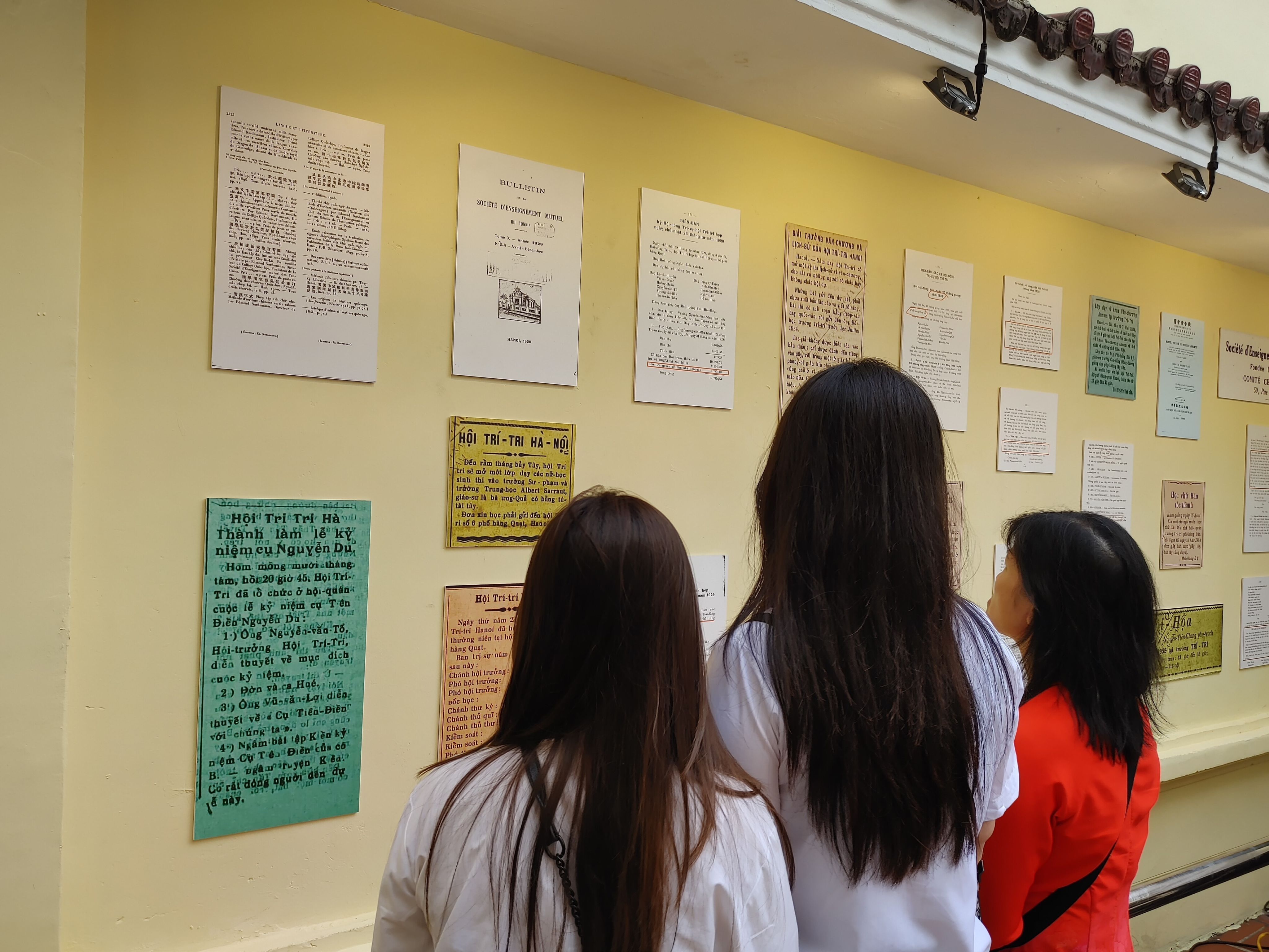 Giáo viên và học sinh tham quan không gian trưng bày phát huy giá trị văn hóa lịch sử “Hội Truyền bá chữ quốc ngữ và danh nhân Nguyễn Văn Tố” tại Trung tâm Giáo dục nghề nghiệp-Giáo dục thường xuyên Nguyễn Văn Tố (số 47 Hàng Quạt), Hoàn Kiếm (Hà Nội).