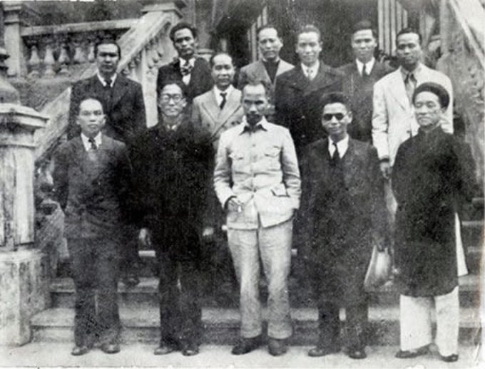 Chính phủ nước Việt Nam Dân chủ Cộng hòa năm 1946 (hàng đầu, từ trái sang phải: Cụ Nguyễn Văn Tố, Chủ tịch Hồ Chí Minh, Cụ Huỳnh Thúc Kháng)