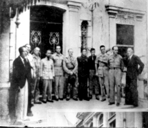 Chủ tịch Hồ Chí Minh và các đại diện của Chính phủ Pháp sau lễ ký Hiệp định Sơ bộ 6/3/1946 tại trụ sở Câu lạc bộ Cercle de l’Union, nay là Cung văn hóa thiếu nhi Hà Nội.