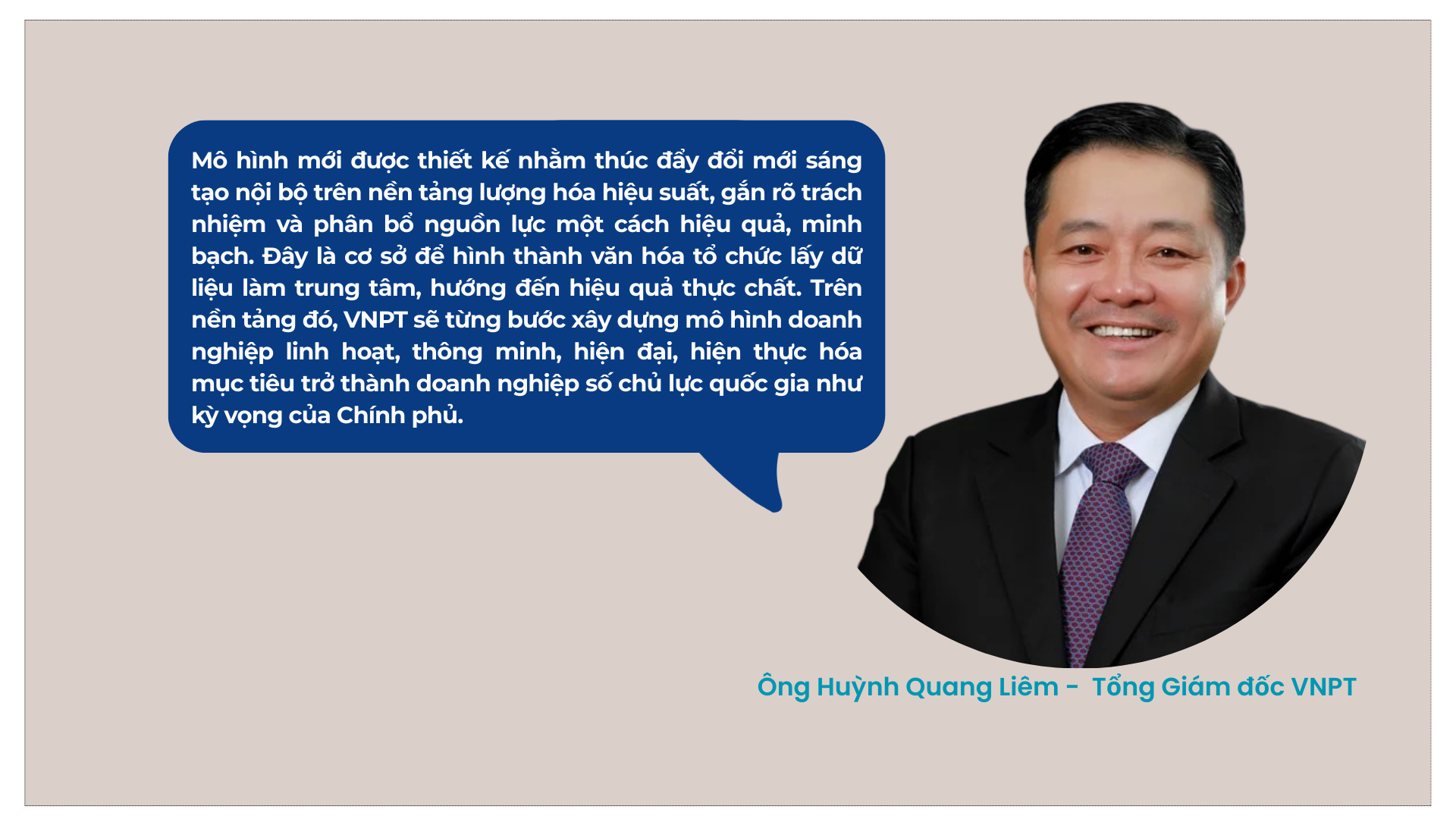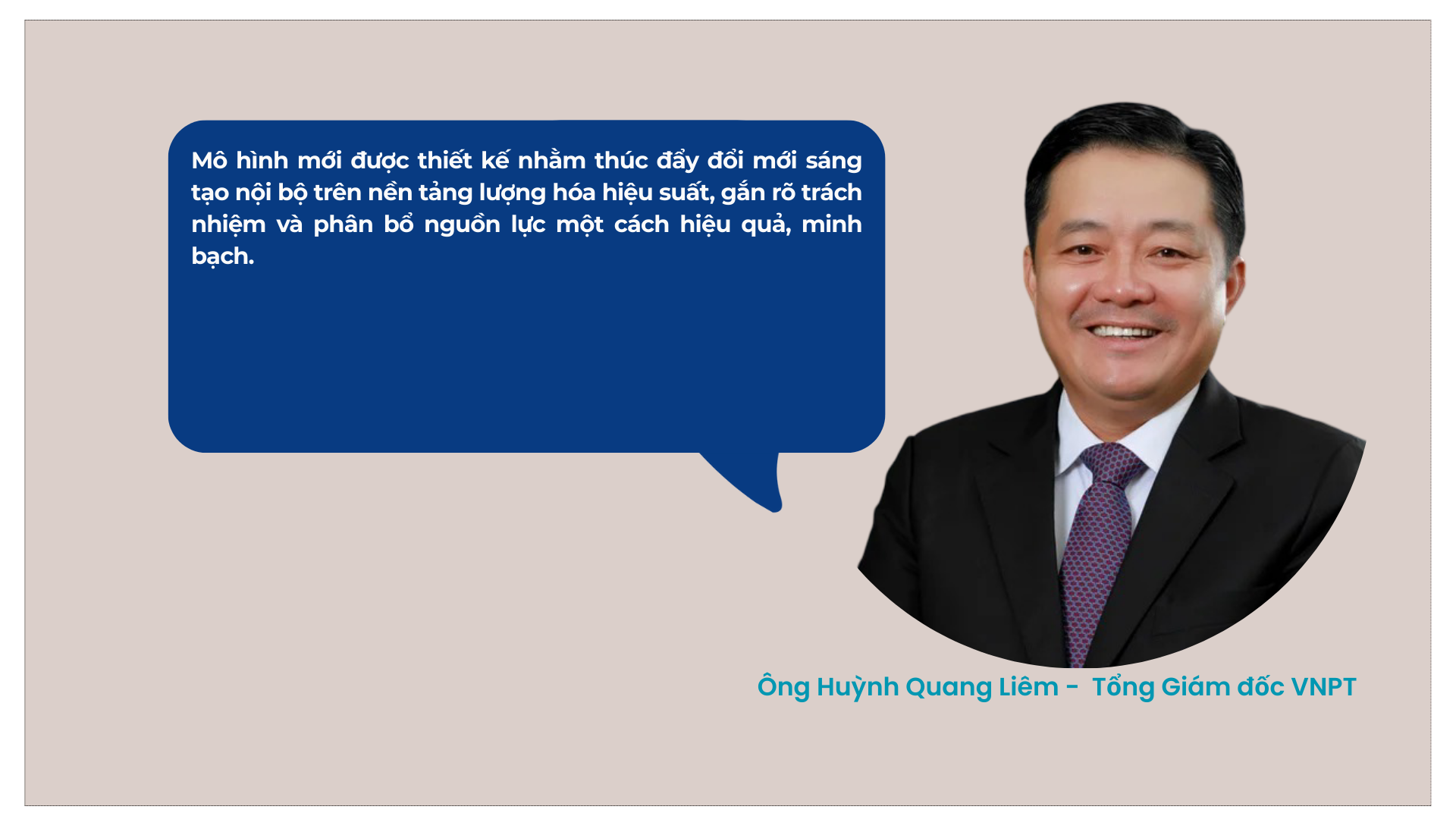 Đây không chỉ là một sự thay đổi về mặt tổ chức, mà còn là bước ngoặt quan trọng đánh dấu một giai đoạn phát triển mới của VNPT. Mô hình mới sẽ tạo động lực đổi mới sáng tạo trong nội bộ, thông qua lượng hóa hiệu suất, gắn trách nhiệm, phân bổ nguồn lực minh bạch. Từ đó, VNPT hình thành văn hóa tổ chức hiệu quả, với dữ liệu là trung tâm. Mục tiêu lớn hơn là xây dựng một VNPT linh hoạt, thông minh, hiện đại, trở thành doanh nghiệp số chủ lực quốc gia theo kỳ vọng Chính phủ.