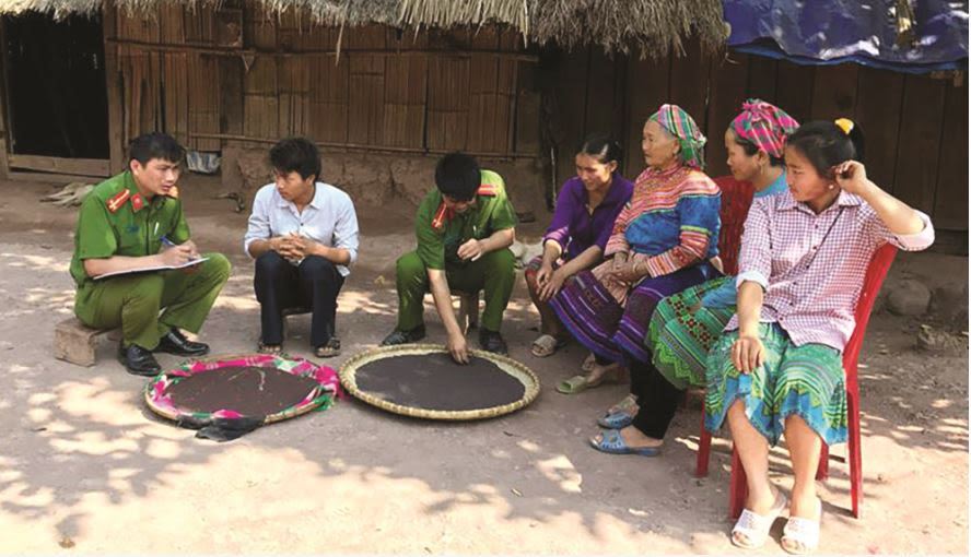 Tăng cường cán bộ công an đến tận nhà bà con để tuyên truyền công tác phòng, chống mua bán người ở vùng đồng bào dân tộc thiểu số.