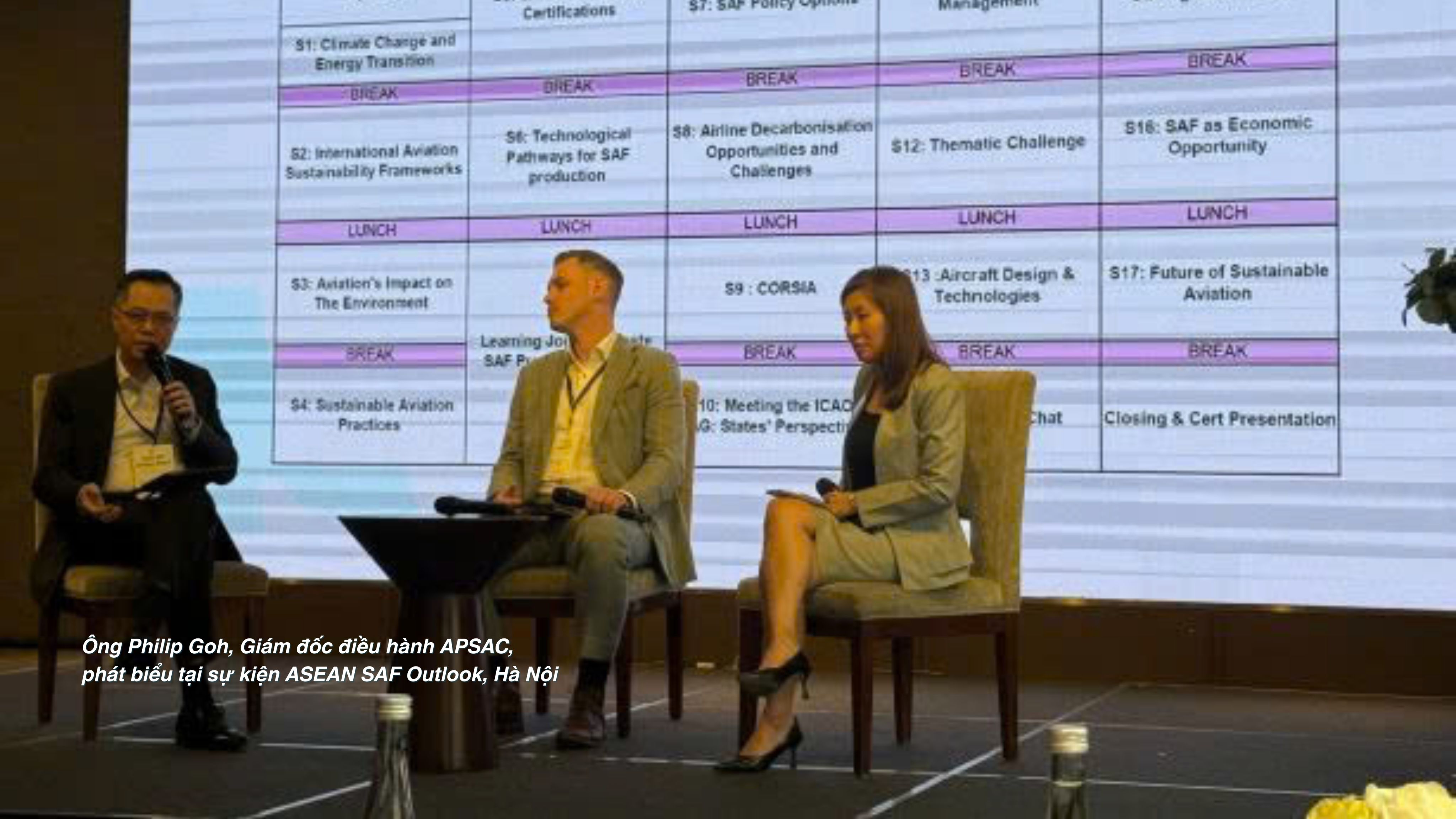 Tại phiên thảo luận về bối cảnh và chính sách SAF khu vực ASEAN trong khuôn khổ sự kiện tại Hà Nội, ông Philip Goh, Giám đốc điều hành Trung tâm Hàng không Bền vững châu Á - Thái Bình Dương (APSAC), chia sẻ: "Qua quá trình làm việc với các bên liên quan trong ngành hàng không khu vực suốt 6 tháng qua, chúng tôi nhận thấy các chính phủ ngày càng nhận thức rõ hơn về sự cần thiết phải xây dựng lộ trình chính sách giảm carbon cho hàng không. Một số quốc gia đã ban hành chính sách hàng không bền vững, số khác đang nỗ lực xây dựng khung chính sách phù hợp với bối cảnh quốc gia. APSAC sẽ tiếp tục hỗ trợ thông qua hợp tác nghiên cứu chính sách, tìm kiếm các con đường giảm phát thải mới và đào tạo nâng cao năng lực. Chúng tôi kỳ vọng các chính sách sẽ sớm đi vào thực thi, bởi khu vực cần tín hiệu cầu mạnh mẽ hơn để thúc đẩy đầu tư gia tăng sản xuất SAF."
