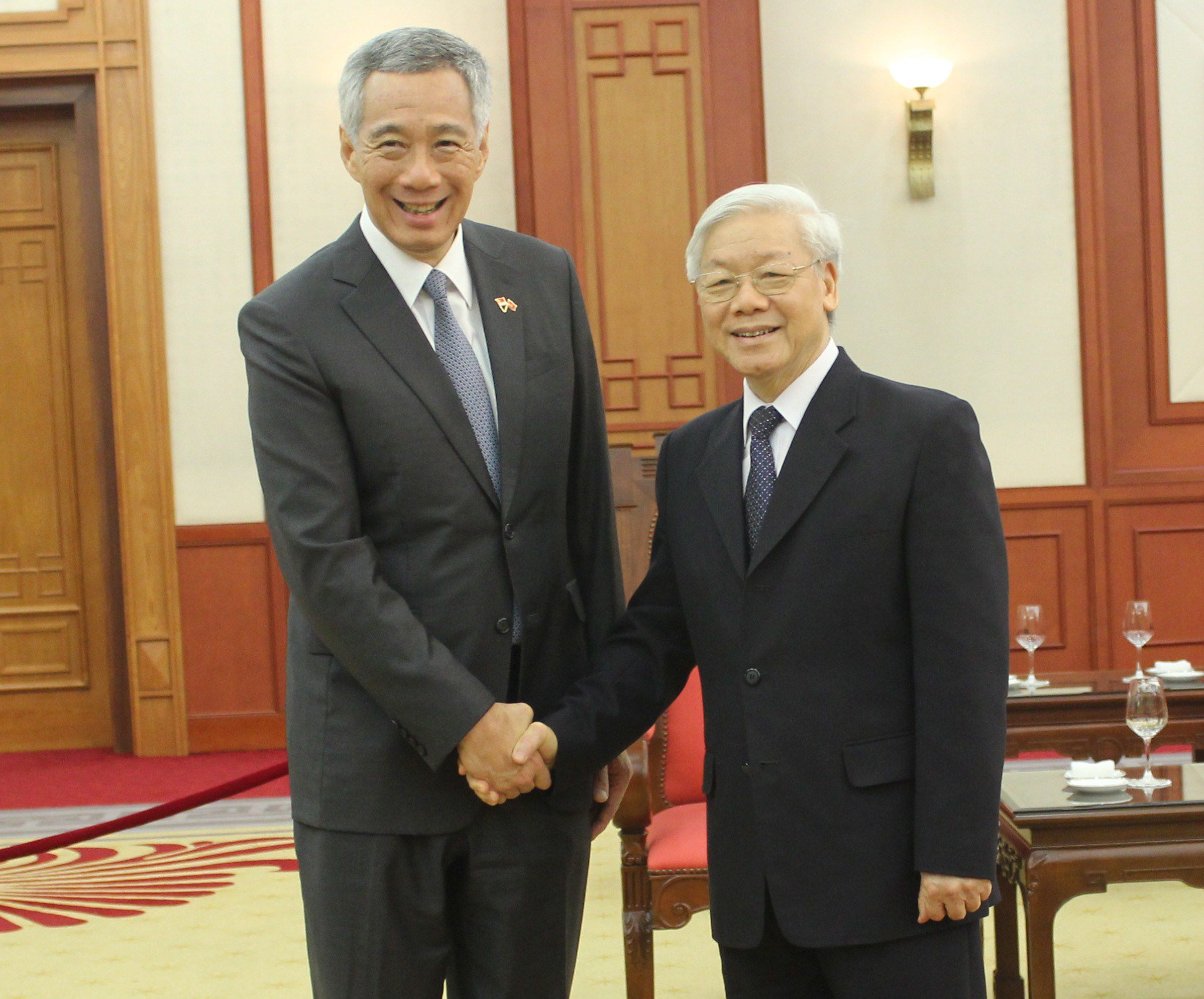 Tổng Bí thư Nguyễn Phú Trọng tiếp Thủ tướng Singapore Lý Hiển Long thăm chính thức Việt Nam tháng 3/2017.