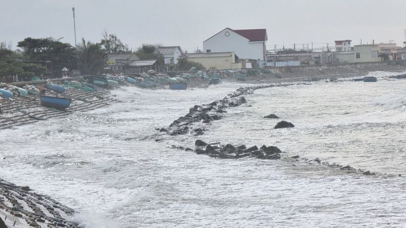Vùng ven biển xã Nhơn Hải (huyện Ninh Hải, tỉnh Ninh Thuận cũ, nay là tỉnh Khánh Hòa) thường xuyên chịu áp lực từ những đợt sóng lớn đánh vào bờ. (Ảnh: Nguyễn Thành-TTXVN)