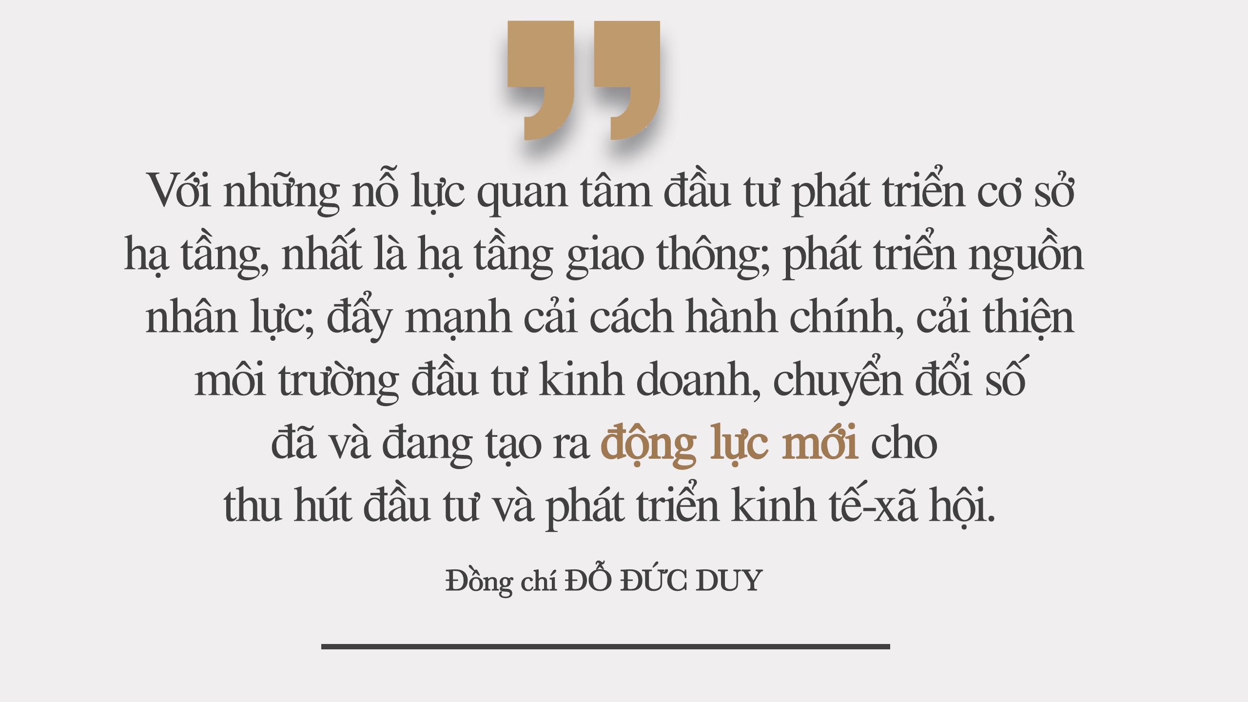 Với những nỗ lực quan tâm đầu tư phát triển cơ sở hạ tầng, nhất là hạ tầng giao thông; phát triển nguồn nhân lực; đẩy mạnh cải cách hành chính, cải thiện môi trường đầu tư kinh doanh, chuyển đổi số đã và đang tạo ra động lực mới cho thu hút đầu tư và phát triển kinh tế-xã hội.