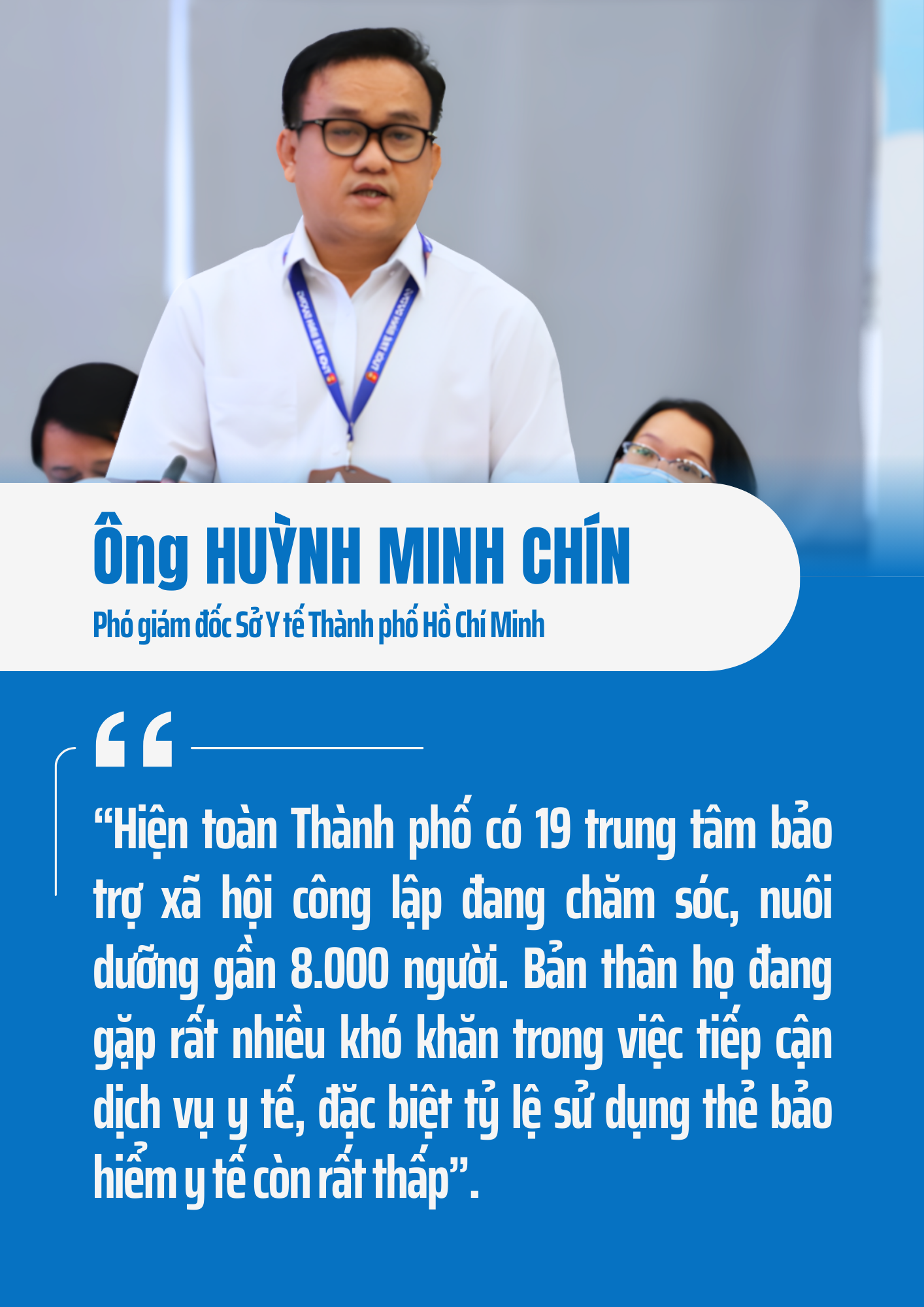 Song song đó, ngành Y tế Thành phố và cơ quan Bảo hiểm xã hội đặc biệt quan tâm chăm sóc sức khỏe cho các nhóm yếu thế đang được nuôi dưỡng tại các trung tâm bảo trợ xã hội. Sở Y tế đã chính thức khởi động Chương trình chăm sóc sức khỏe toàn diện cho người yếu thế. Sau khi Chương trình ra đời, 16 bệnh viện đa khoa và chuyên khoa của Thành phố Hồ Chí Minh đã cùng tham gia hỗ trợ các Trung tâm bảo trợ, thực hiện khám chữa bệnh bảo hiểm y tế tại chỗ, khám định kỳ.