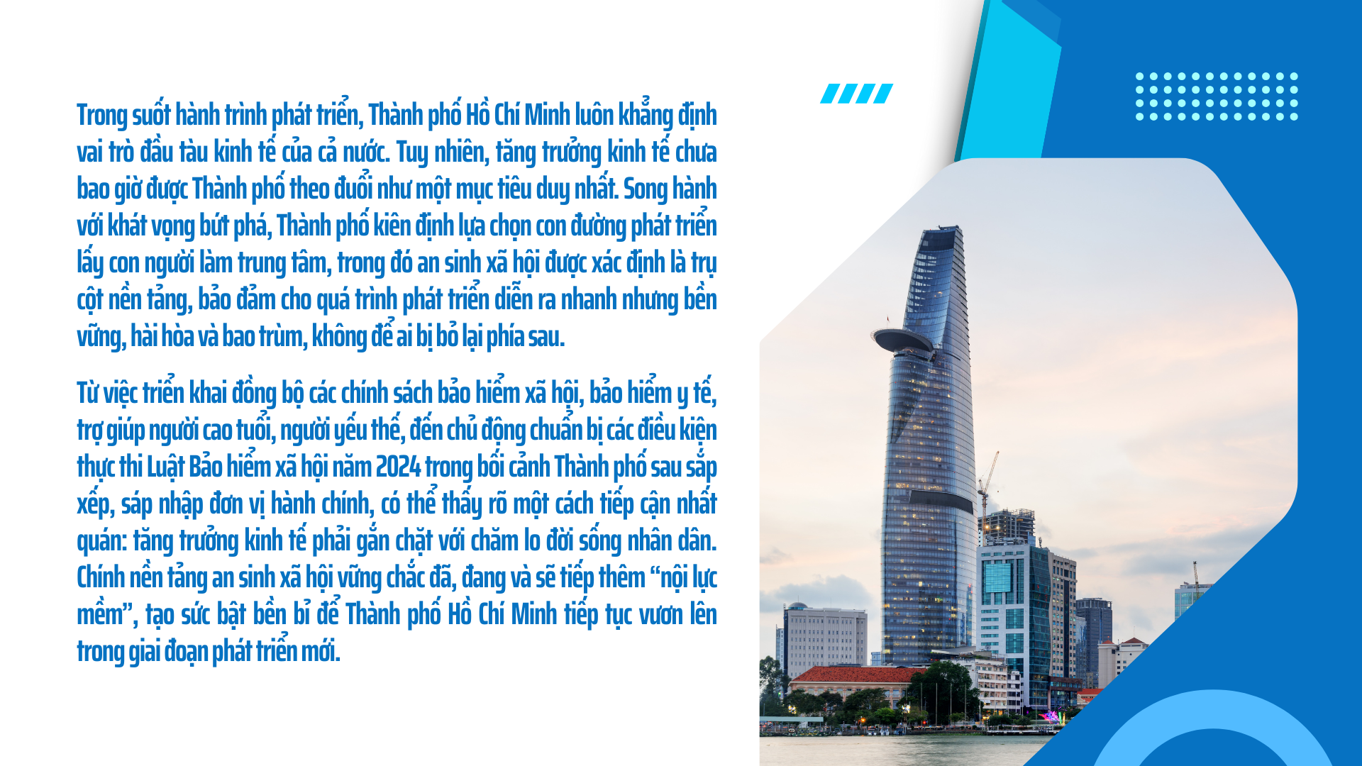 Trong bối cảnh Thành phố Hồ Chí Minh sau sáp nhập, quy mô dân số lớn hơn, yêu cầu quản trị đô thị và bảo đảm an sinh xã hội cũng cao hơn. Những chính sách kịp thời, linh hoạt và giàu tính nhân văn về bảo hiểm xã hội, bảo hiểm y tế, trợ cấp hưu trí xã hội chính là minh chứng sinh động cho vai trò “trụ cột” của an sinh xã hội trong chiến lược phát triển Thành phố.