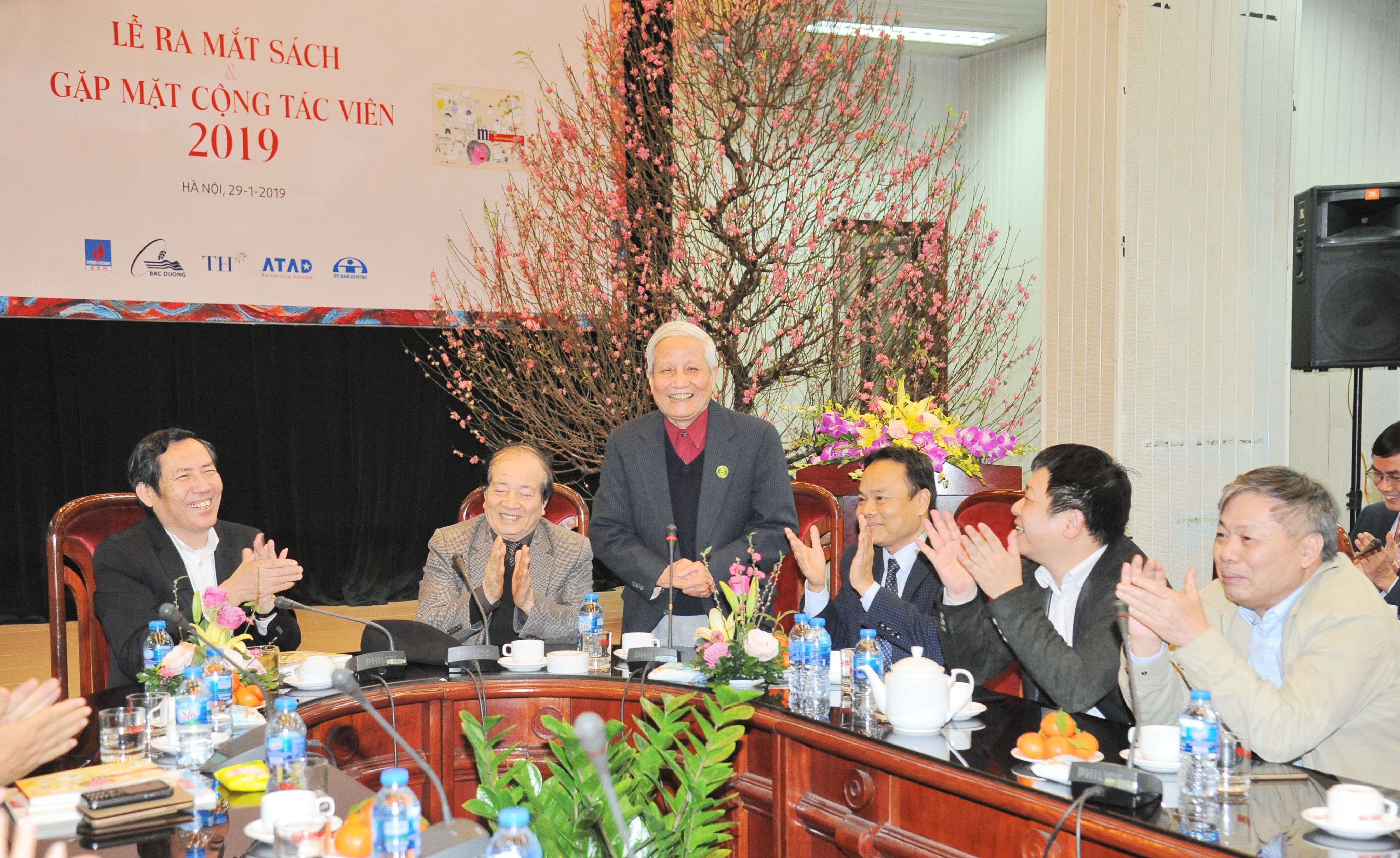 Nguyên Tổng Biên tập Thuận Hữu cùng các lãnh đạo Báo Nhân Dân qua các thời kỳ gặp mặt cộng tác viên văn nghệ năm 2019.