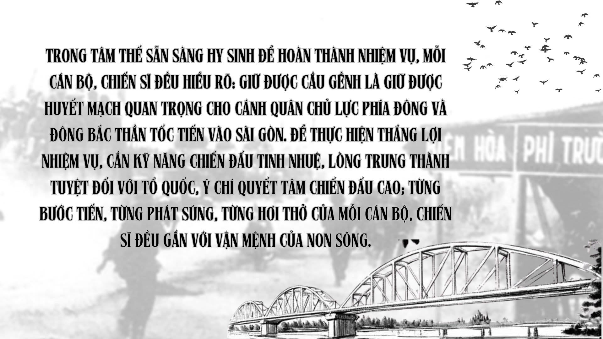 Trong tình thế đó, nhiệm vụ đánh chiếm và bảo vệ cầu Gềnh nguyên vẹn là một thử thách lớn, đòi hỏi sự chính xác, mưu trí và ý chí sắt đá, bởi đây không chỉ là một mục tiêu quân sự, mà là nút thắt sinh tử của cả hướng tiến công chiến lược với quy mô cấp quân đoàn.