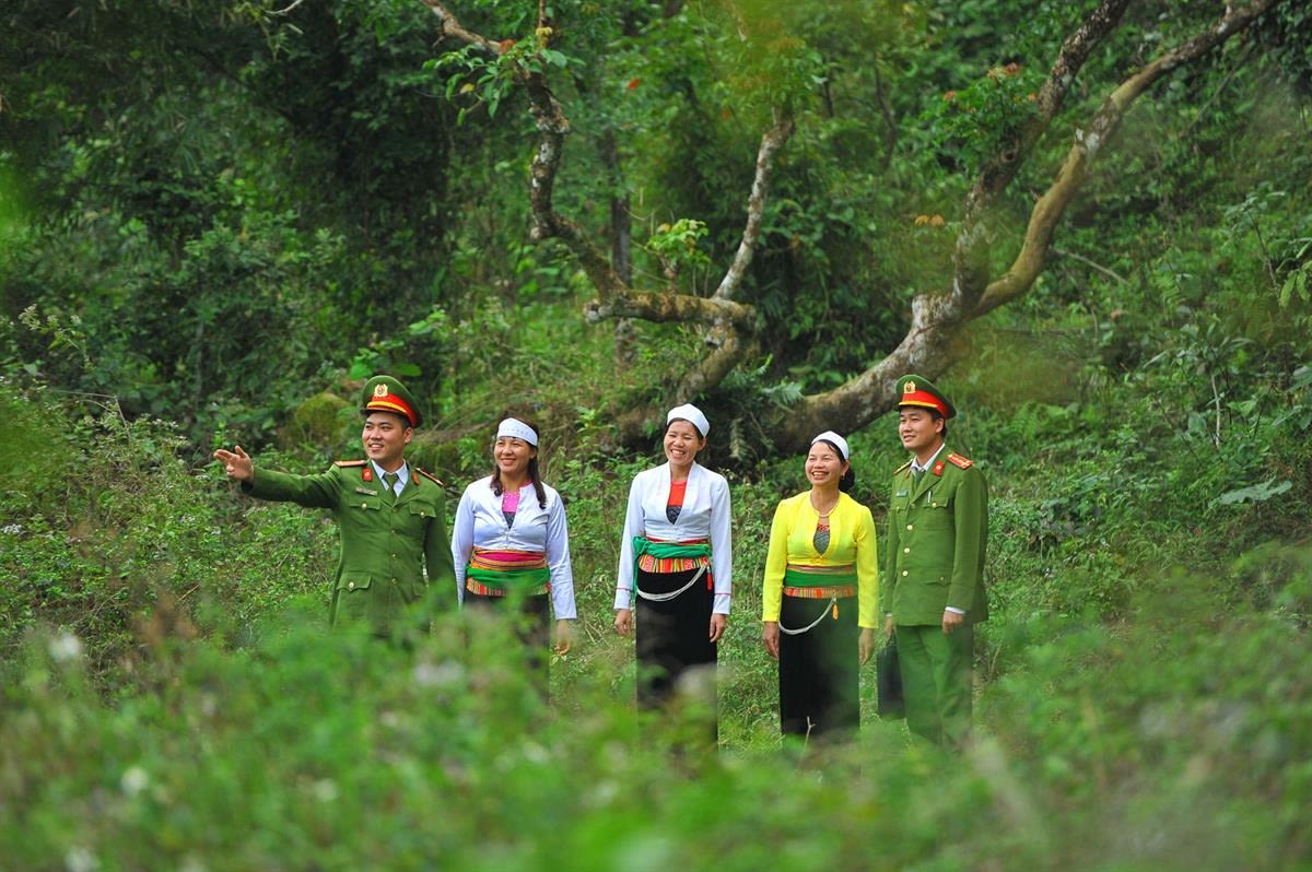 Chiến sĩ công an nhân dân tuần tra địa bàn cùng đồng bào dân tộc thiểu số. (Ảnh TTXVN)