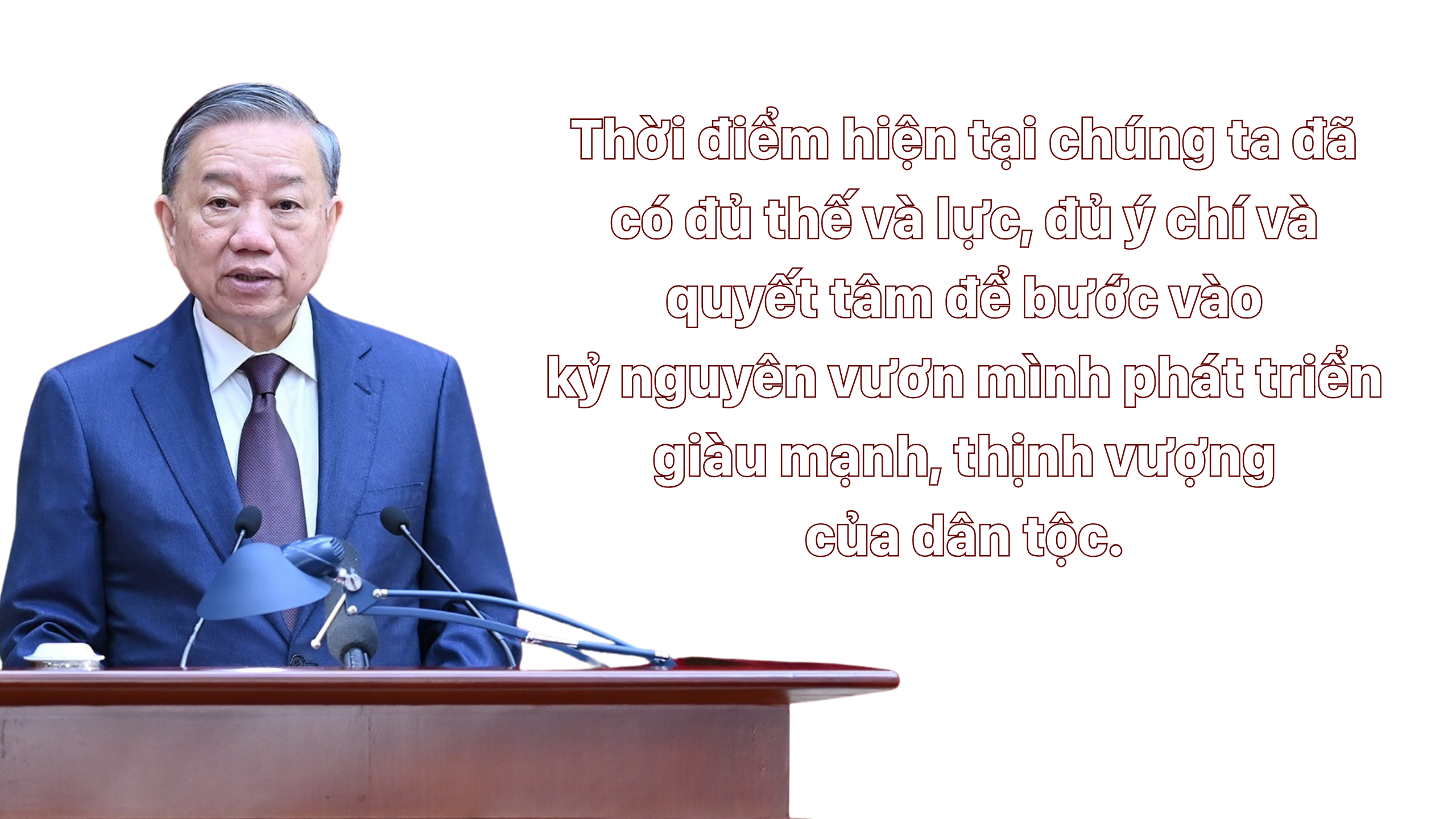 Đồng chí Tổng Bí thư cũng khẳng định “thời điểm hiện tại chúng ta đã có đủ thế và lực, đủ ý chí và quyết tâm để bước vào kỷ nguyên vươn mình phát triển giàu mạnh, thịnh vượng của dân tộc” .