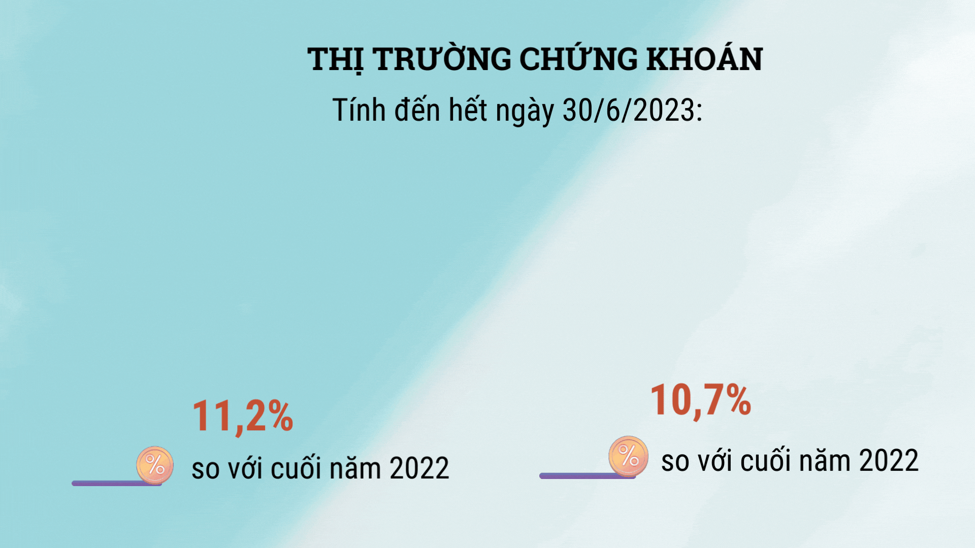 Trong 6 tháng đầu năm, diễn biến thị trường chứng khoán có xu hướng hồi phục. Tính đến hết ngày 30/6/2023, VN-Index đạt 1.120,18 điểm, tăng 4,2% so với cuối tháng trước, tăng 11,2% so với cuối năm 2022; quy mô vốn hóa thị trường cổ phiếu đạt 5.783 nghìn tỷ đồng, tăng 10,7% so với cuối năm 2022.