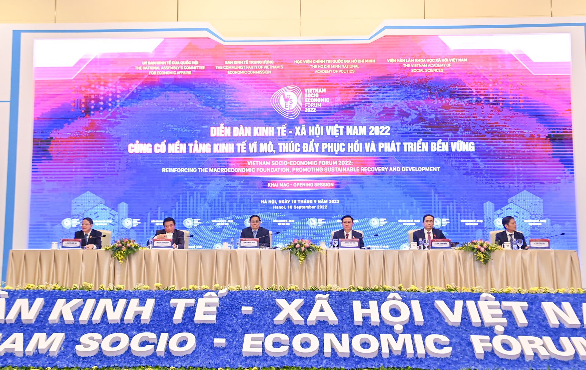 Hôm nay, Ủy ban Kinh tế của Quốc hội, Ban Kinh tế Trung ương Đảng, Học viện Chính trị Quốc gia Hồ Chí Minh và Viện Hàn lâm Khoa học xã hội Việt Nam phối hợp tổ chức Diễn đàn Kinh tế-Xã hội Việt Nam 2022 với chủ đề "Củng cố nền tảng kinh tế vĩ mô, thúc đẩy phục hồi và phát triển bền vững".