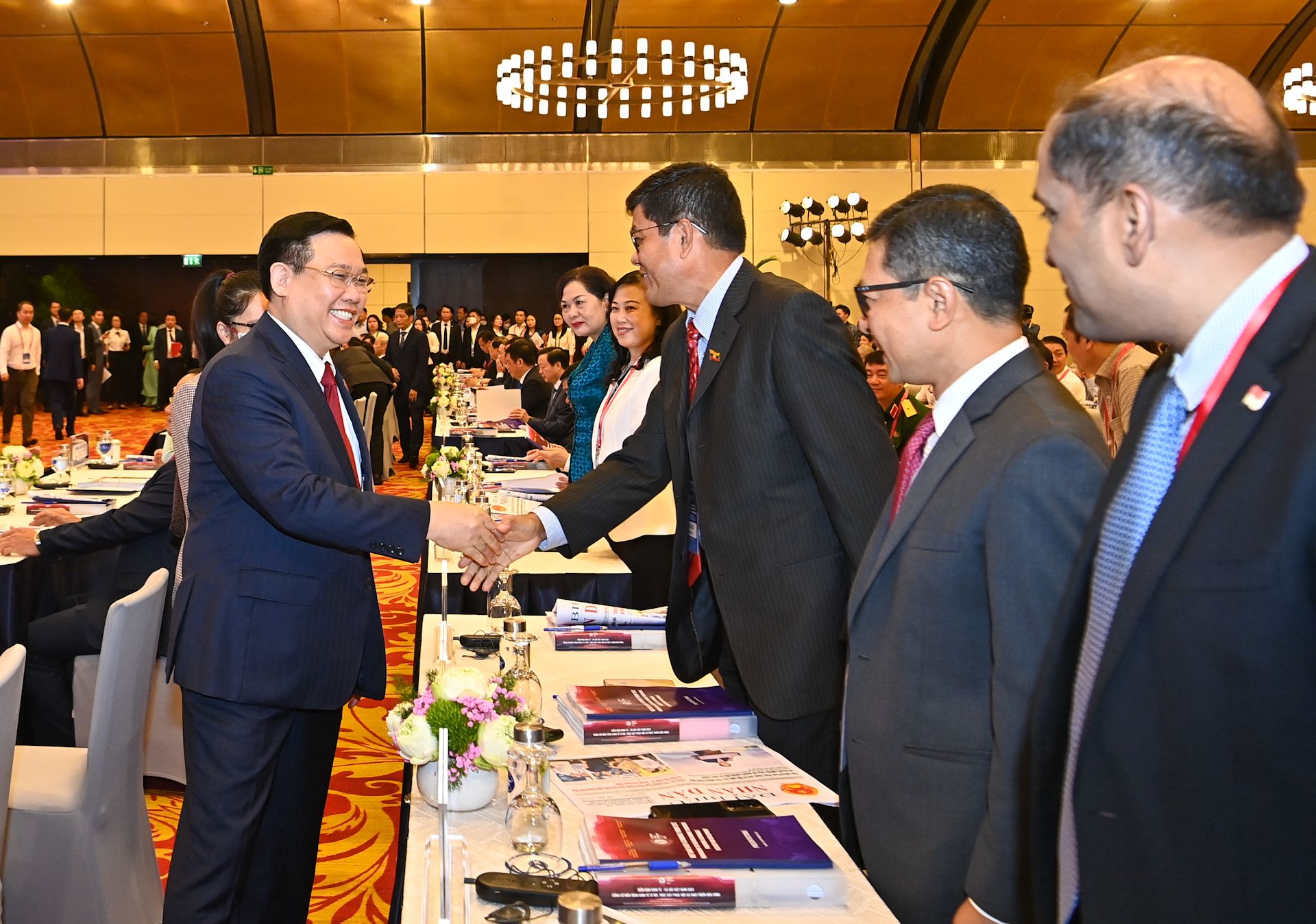 Chủ tịch Quốc hội Vương Đình Huệ với các đại biểu dự diễn đàn.