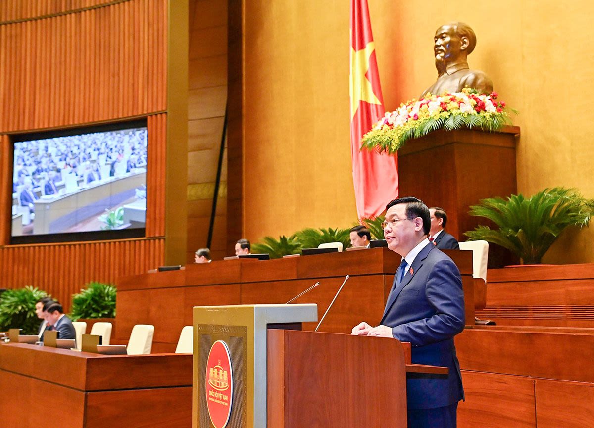 Sau 23 ngày làm việc nghiêm túc, khẩn trương, khoa học, dân chủ và trách nhiệm cao, hôm nay, Kỳ họp thứ 5, Quốc hội khóa XV đã hoàn thành toàn bộ chương trình đề ra và tiến hành phiên bế mạc. Thay mặt Ủy ban Thường vụ Quốc hội, tôi xin báo cáo khái quát kết quả Kỳ họp như sau:
