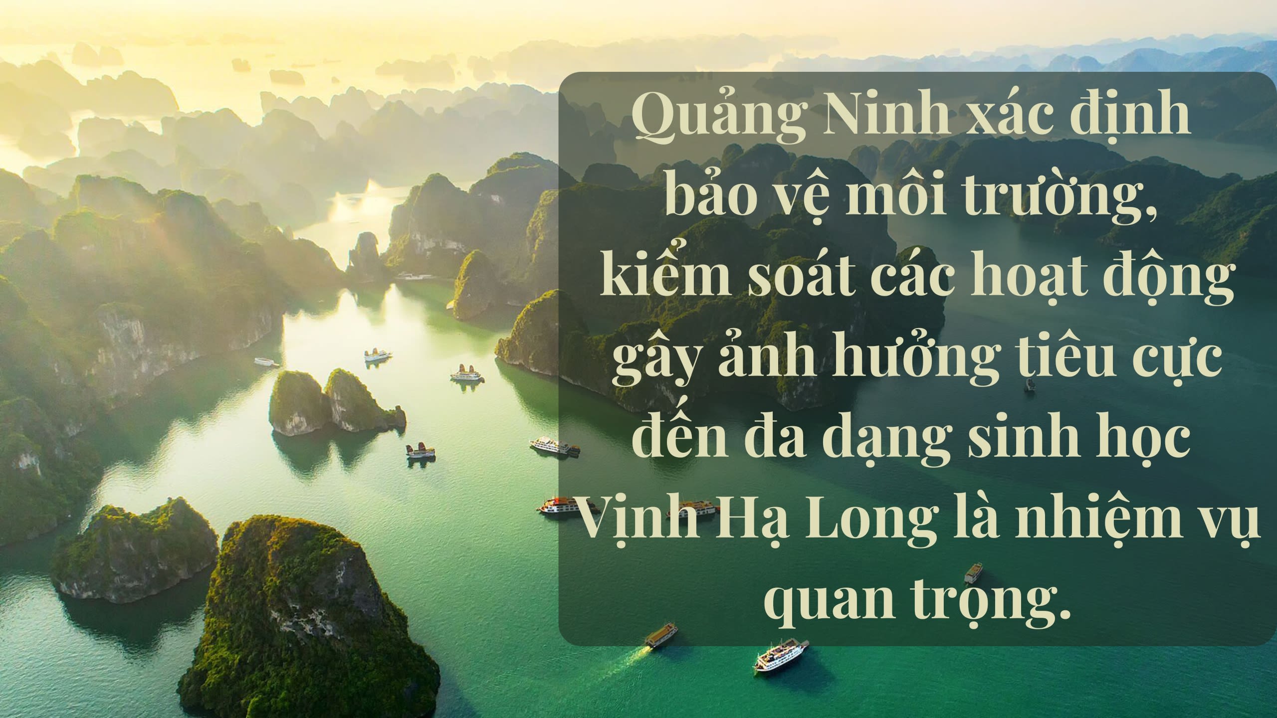 Quảng Ninh xác định bảo vệ môi trường, kiểm soát các hoạt động gây ảnh hưởng tiêu cực đến đa dạng sinh học Vịnh Hạ Long là nhiệm vụ quan trọng. Vì thế, cơ quan chức năng đã triển khai công tác tuần tra, kiểm soát và xử lý nghiêm các hành vì xâm hại đến các hệ sinh thái và các loài sinh vật. Ban Quản lý Vịnh Hạ Long tích cực kêu gọi sự hỗ trợ của các tổ chức quốc tế để triển khai các giải pháp bảo tồn đa dạng sinh học Vịnh Hạ Long như: phối hợp với tổ chức UNESCO, tổ chức Bảo tồn thiên nhiên quốc tế (IUCN) triển khai chương trình Giám sát đa dạng sinh học Vịnh Hạ Long năm 2019; Phối hợp với trường đại học Osaka Nhật Bản triển khai các hoạt động trồng phục hồi hệ sinh thái rừng ngập mặn tại khu vực Đầu Gỗ, Ba Cửa trên Vịnh Hạ Long…