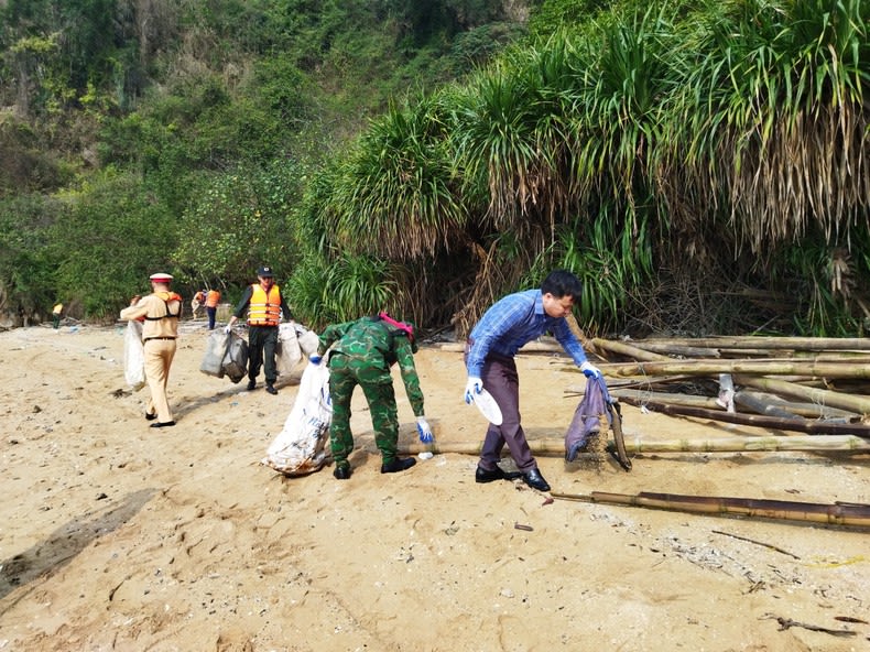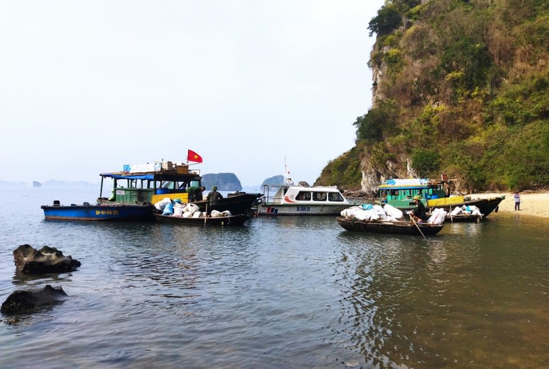 Bộ đội Biên phòng Quảng Ninh tham gia dọn rác thải trên Vịnh Hạ Long.