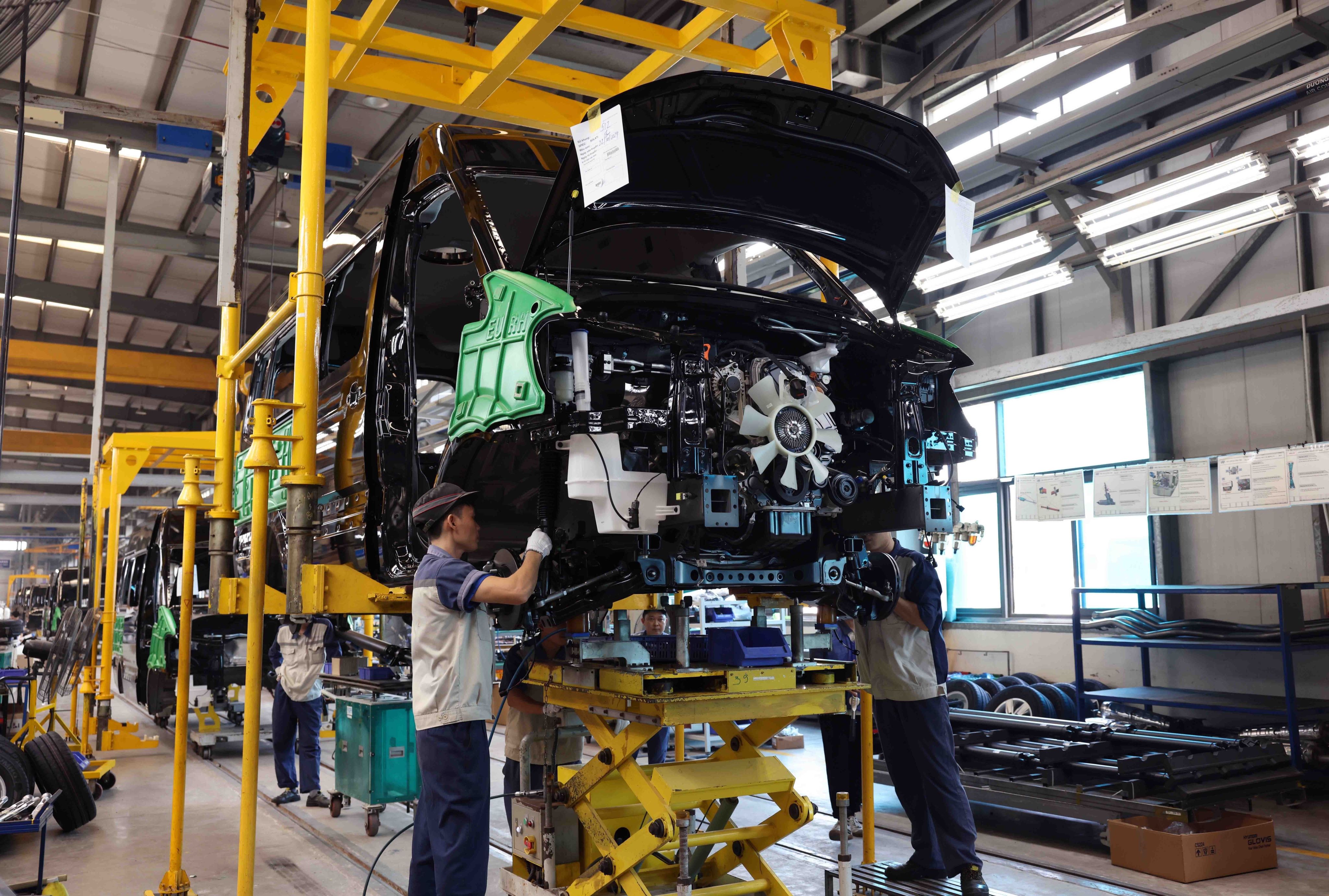 Lắp ráp ô-tô ở Nhà máy Hyundai Thành Công (Công ty Cổ phần Ô-tô Thành Công Ninh Bình) tại Khu công nghiệp Gián Khẩu, tỉnh Ninh Bình. (Ảnh: Vũ Sinh - TTXVN)