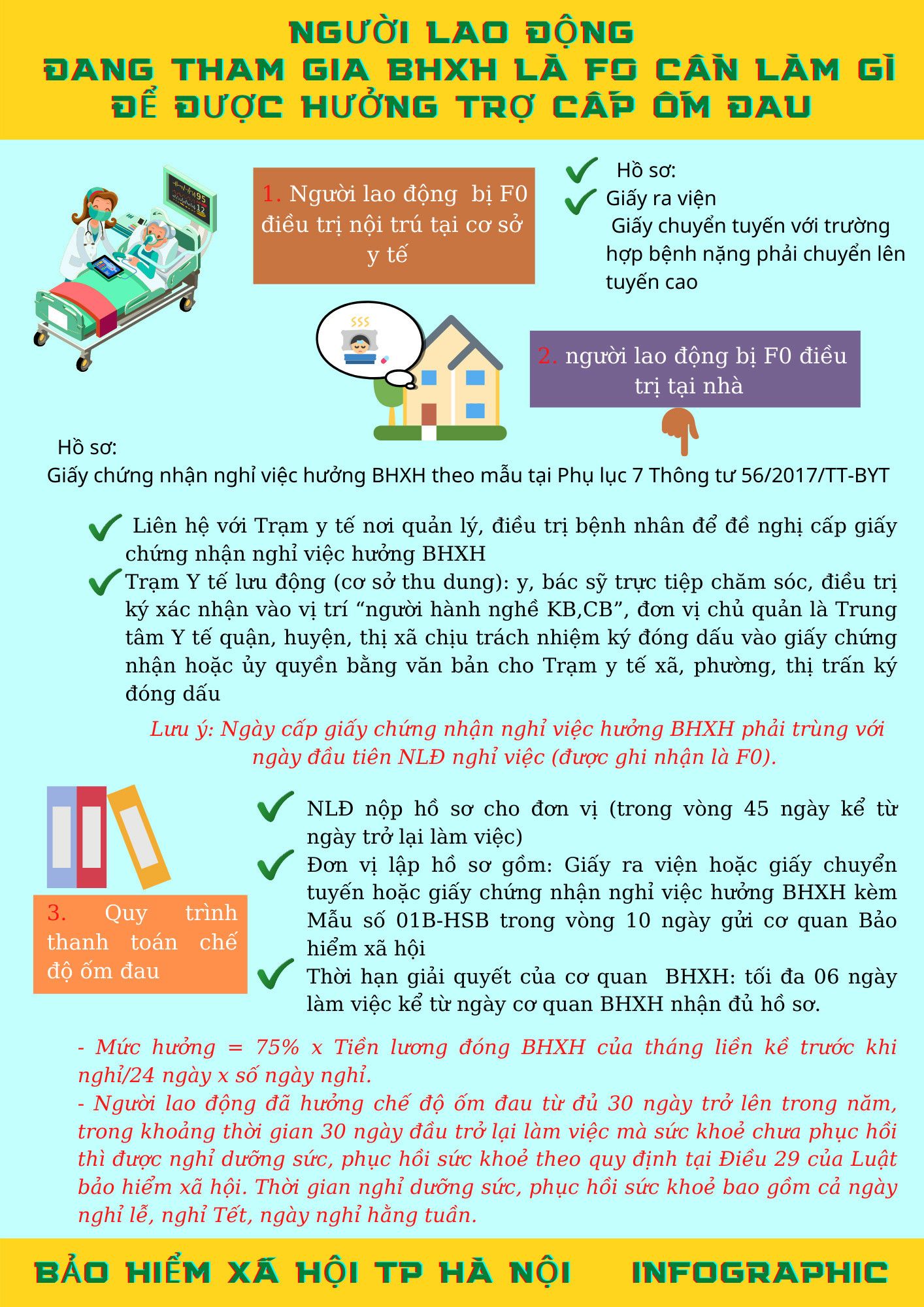 Hướng dẫn của Bảo hiểm xã hội TP Hà Nội cho người lao động tham gia bảo hiểm xã hội là F0 để được hưởng trợ cấp ốm đau.