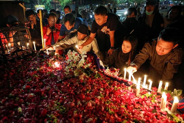 Tưởng nhớ các nạn nhân của vụ giẫm đạp bên ngoài sân vận động Kanjuruhan. (Ảnh: Reuters)