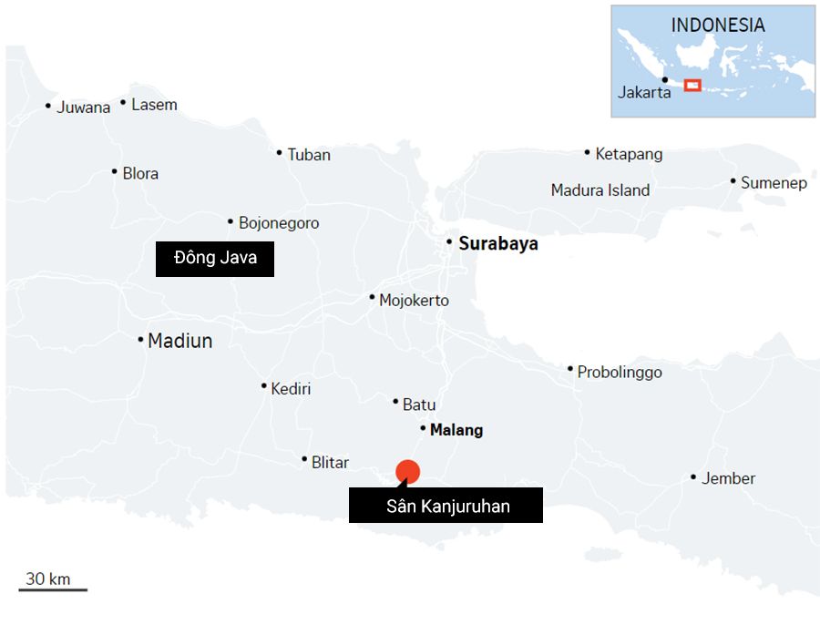 Trận bóng tại tỉnh Đông Java đã kết thúc bằng thảm kịch, khi cổ động viên của đội bại trận - Arema FC - tràn xuống sân thi đấu, khiến cảnh sát phải bắn hơi cay để kiểm soát tình hình.