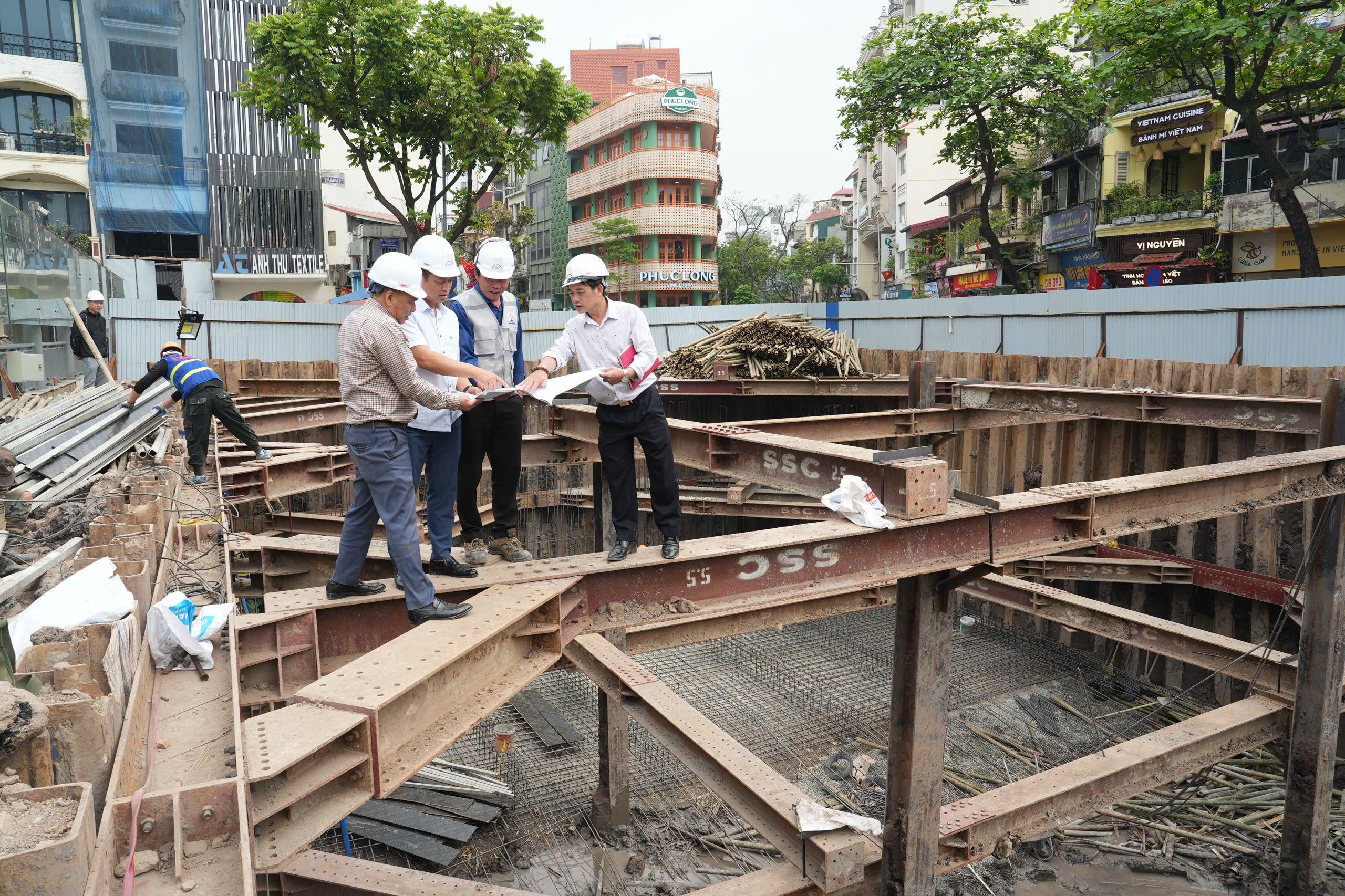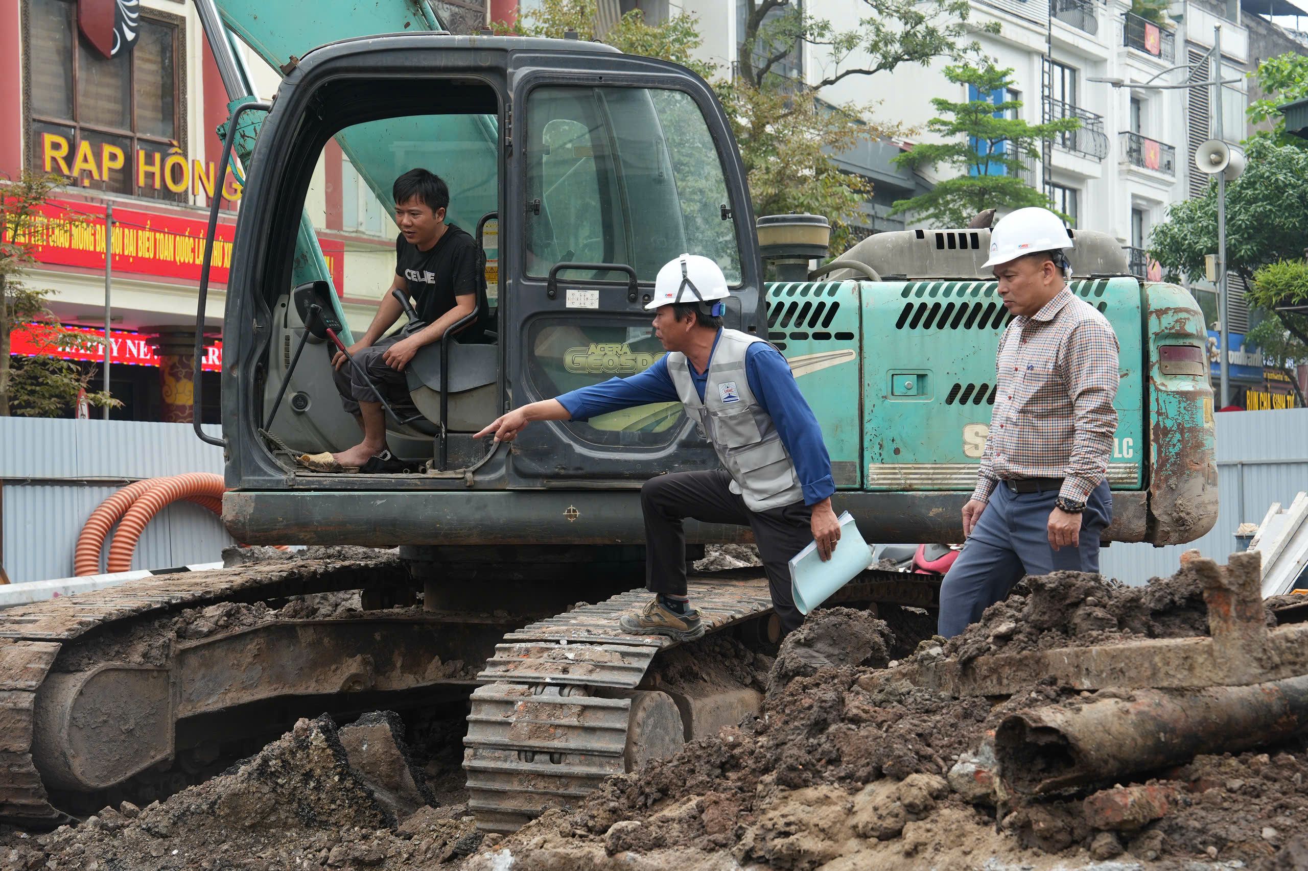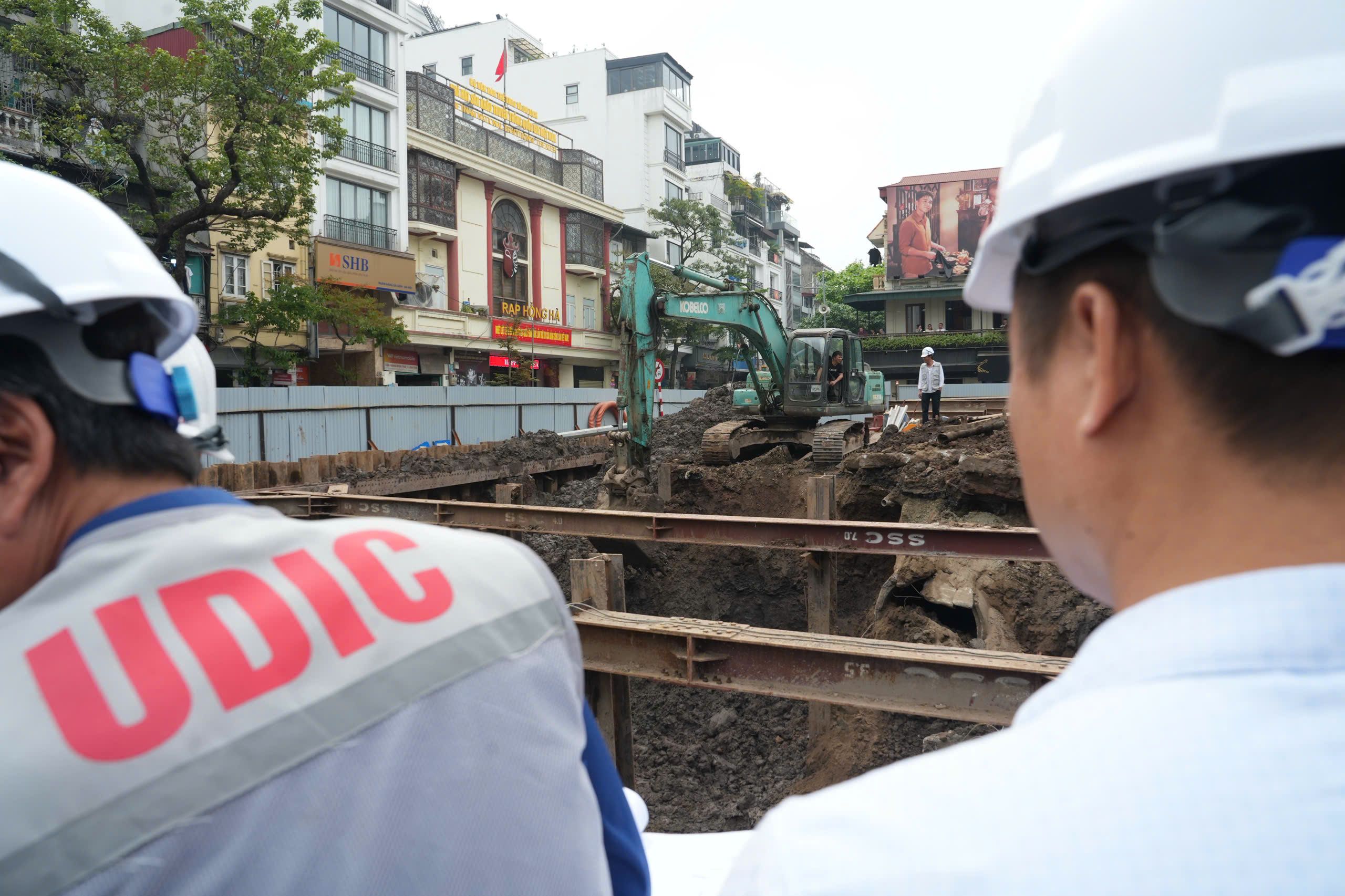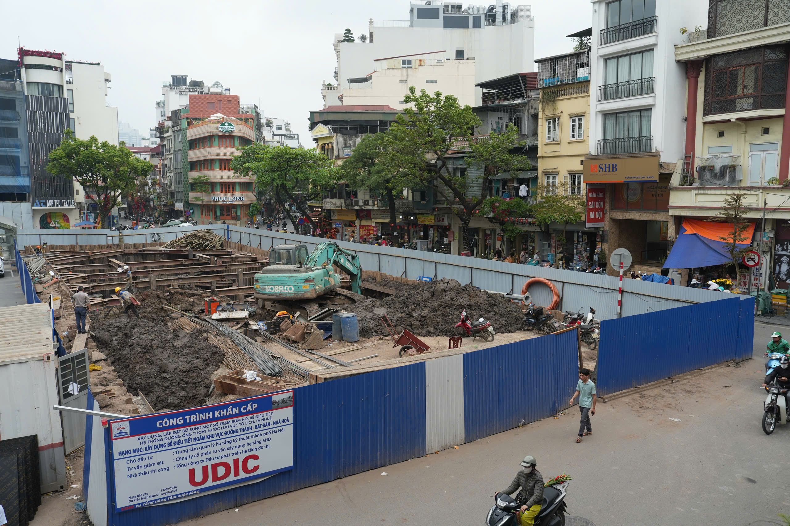 Thi công bể điều tiết ngầm tại khu vực Hàng Da. (Ảnh: Hồng Quân)