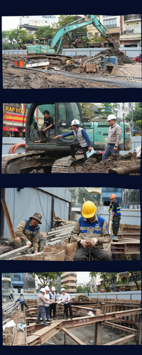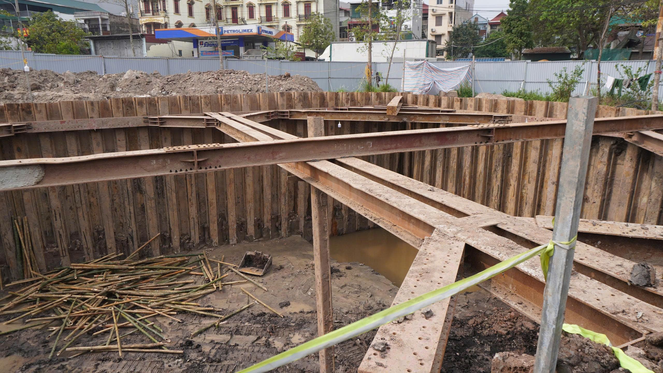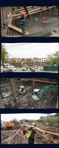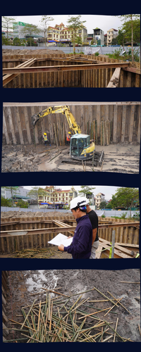 Trong khi đó, nếu đặt cạnh phương pháp thi công truyền thống đang được áp dụng tại khu vực bể điều tiết tại khu vực bãi đất trống dốc cầu Đuống (xã Phù Đổng), sự khác biệt về công nghệ và tổ chức thi công trở nên rõ nét.