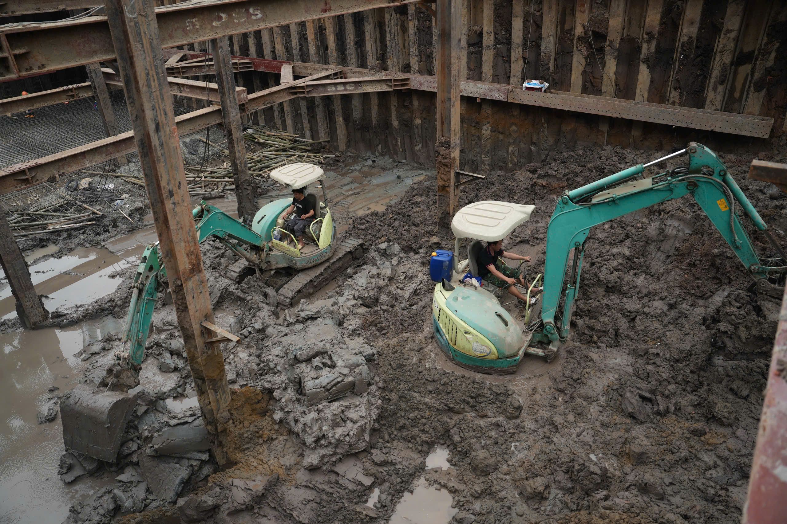Lao động thi công công trình chống ngập đô thị.