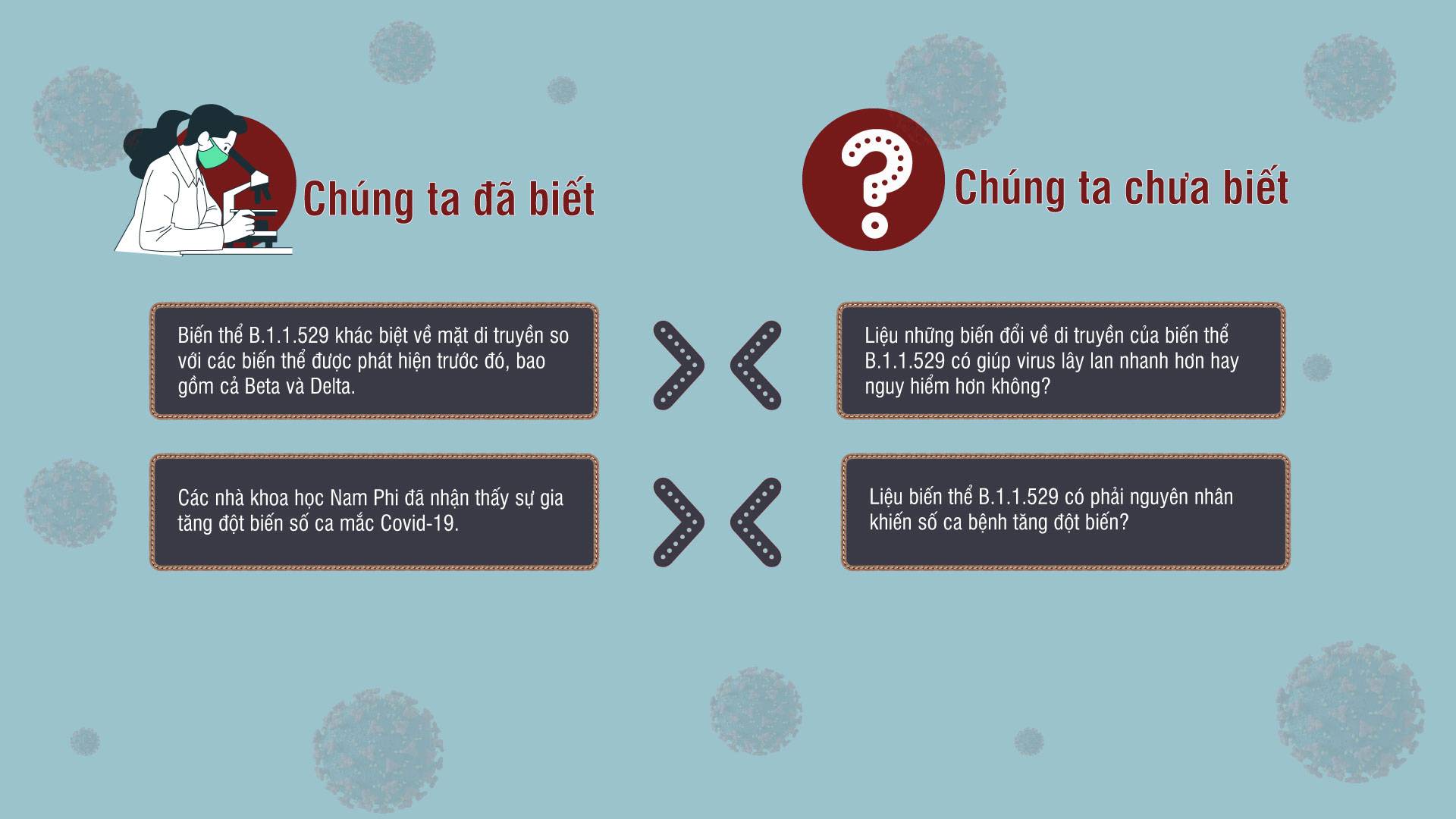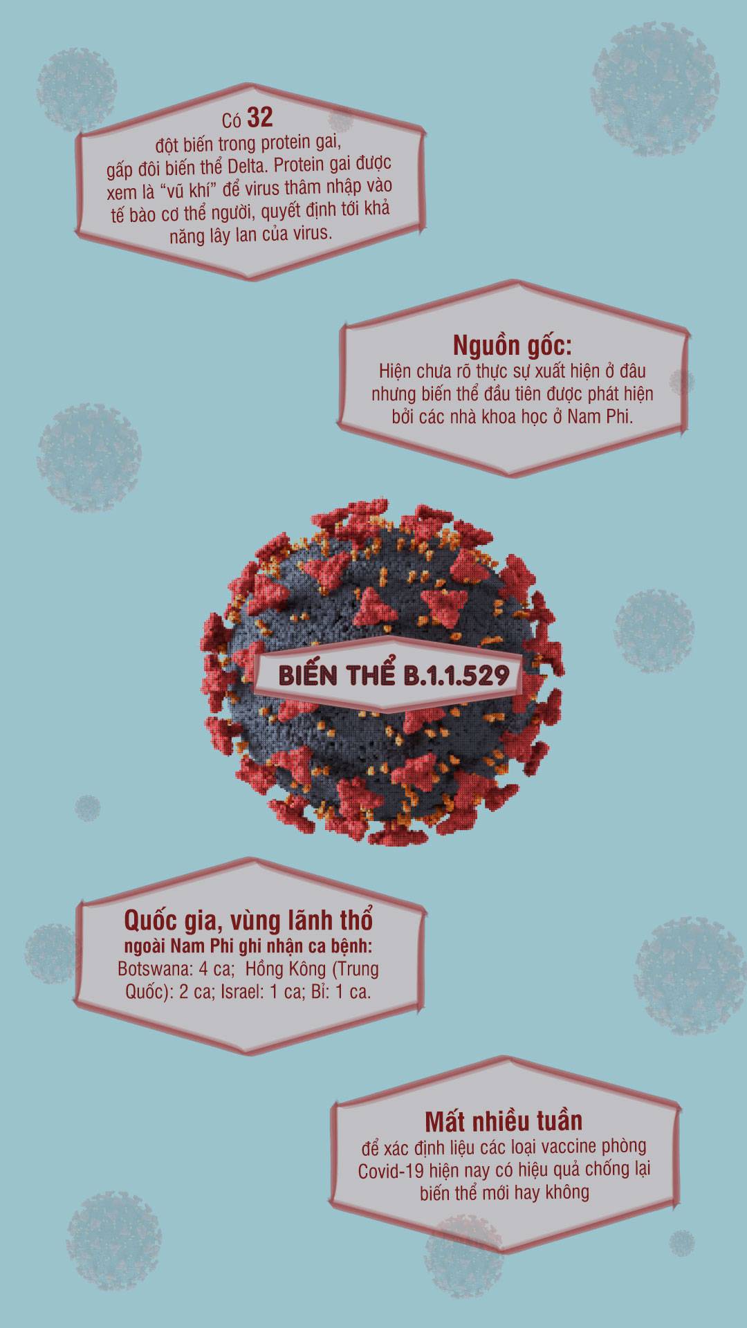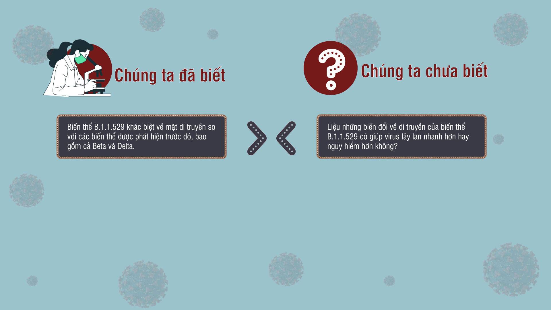 Theo các nhà khoa học, biến thể mới B.1.1.529 của virus SARS-CoV-2 có tới 32 đột biến trong protein gai, cao gấp 2 lần biến thể Delta và làm cho biến thể này về cơ bản khác với virus SARS-CoV-2 trước đó mà các vaccine phòng Covid-19 hiện tại được bào chế để chống lại. Đến thời điểm hiện tại, vẫn còn nhiều câu hỏi về biến thể này cần được các nhà khoa học giải đáp.