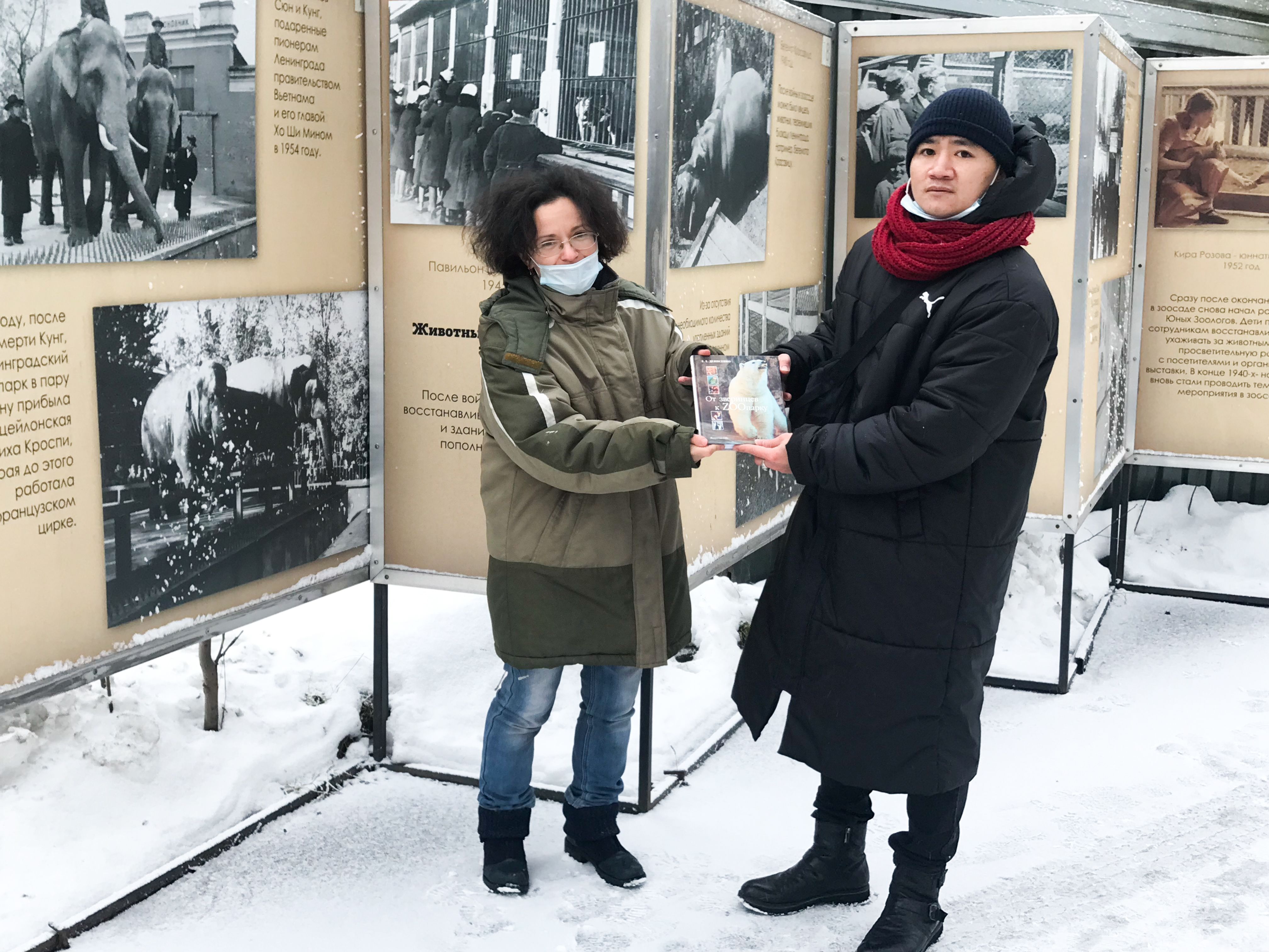 Bà Svetlana Alexandrova, Trưởng ban giáo dục của sở thú chờ chúng tôi trong phòng riêng, tay cầm cuốn sách “Lịch sử vườn thú Leningrad” của tác giả E.E.Denisenko. Nhấn mạnh phần quan trọng về những chú voi trong sở thú, bà đề đạt dẫn những vị khách hiếu kỳ đi thăm cơ sở. Từ những trang sách và lời kể của bà, chuyện về hai chú voi Việt Nam bắt đầu.