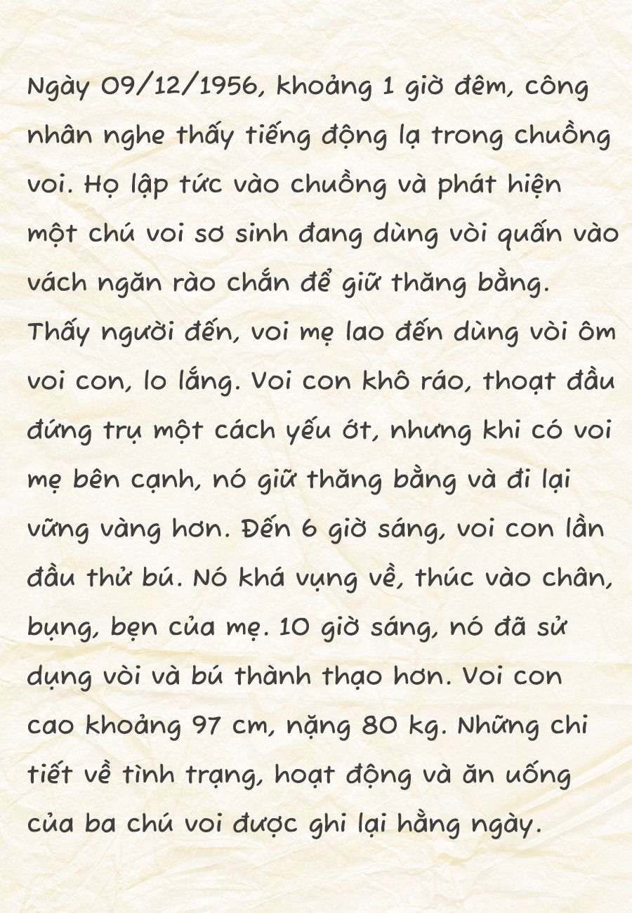 Tháng 12/1956, một sự việc trọng đại diễn ra. Voi cái Công sinh hạ một chú voi con. Sổ theo dõi ghi lại: