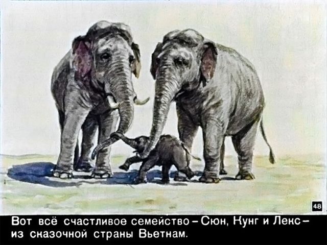Câu chuyện thú vị về những chú voi Việt Nam đã được thể hiện theo một cách đặc biệt vào những năm 50 của thế kỷ 20, trong tác phẩm của hai đại diện đáng chú ý của cư dân Leningrad là nhà văn Vitaly Bianki và họa sĩ Vladimir Shevchenko.