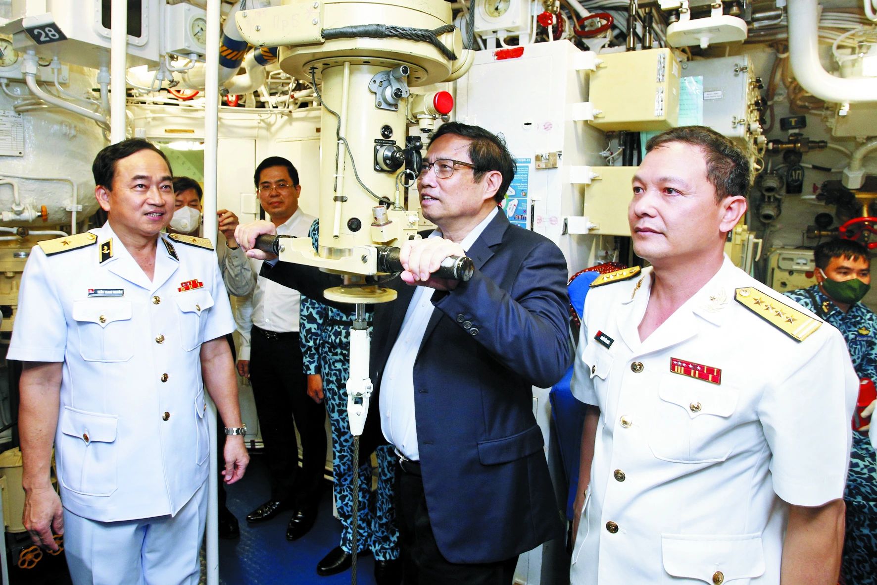 Thủ tướng Phạm Minh Chính kiểm tra khí tài trên tàu ngầm của Lữ đoàn 189, tháng 3/2022. (Ảnh: Báo Thanh niên)