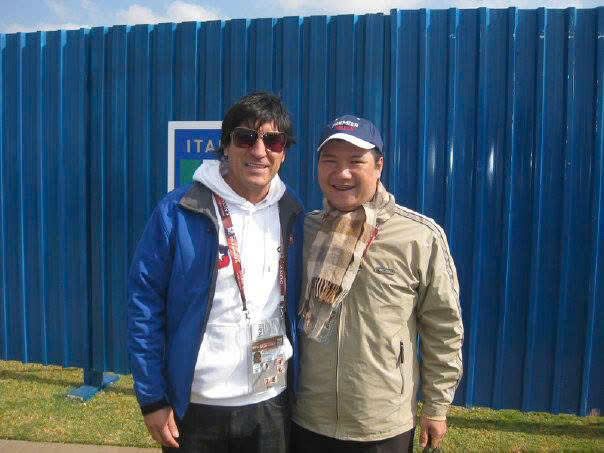 Bình luận viên Quang Huy chụp với cầu thủ Ivan Zamorano tại World Cup 2010.