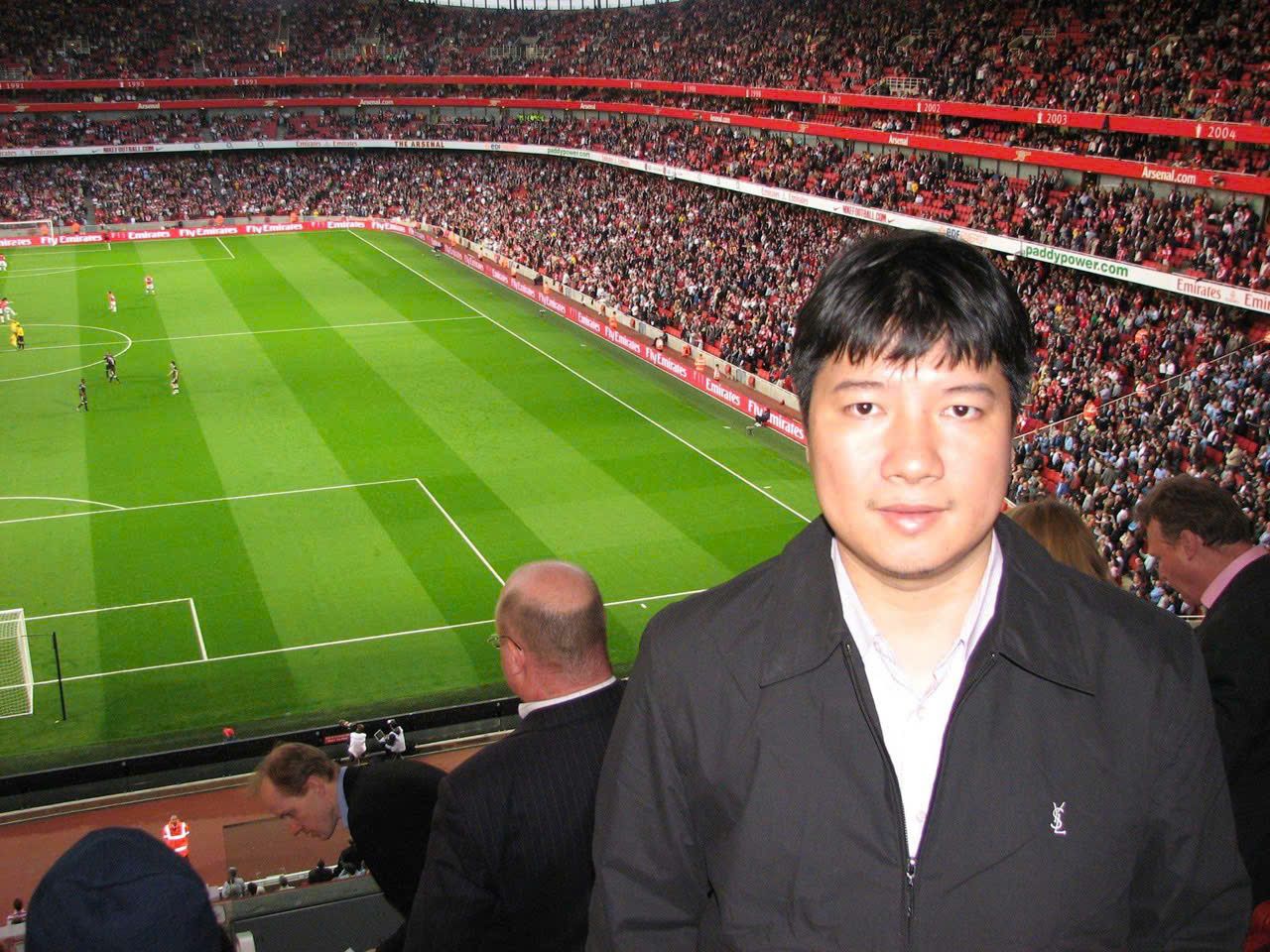 Bình luận viên Quang Huy tại Sân vận động Emirates mùa giải Ngoại hạng Anh 2006/07.