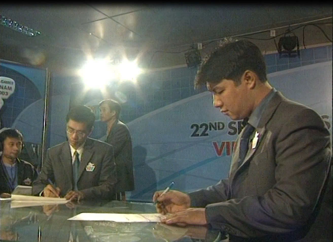 Bình luận viên Quang Huy tác nghiệp tại SEA Games 22 năm 2003 - lần đầu Việt Nam đăng cai tổ chức.