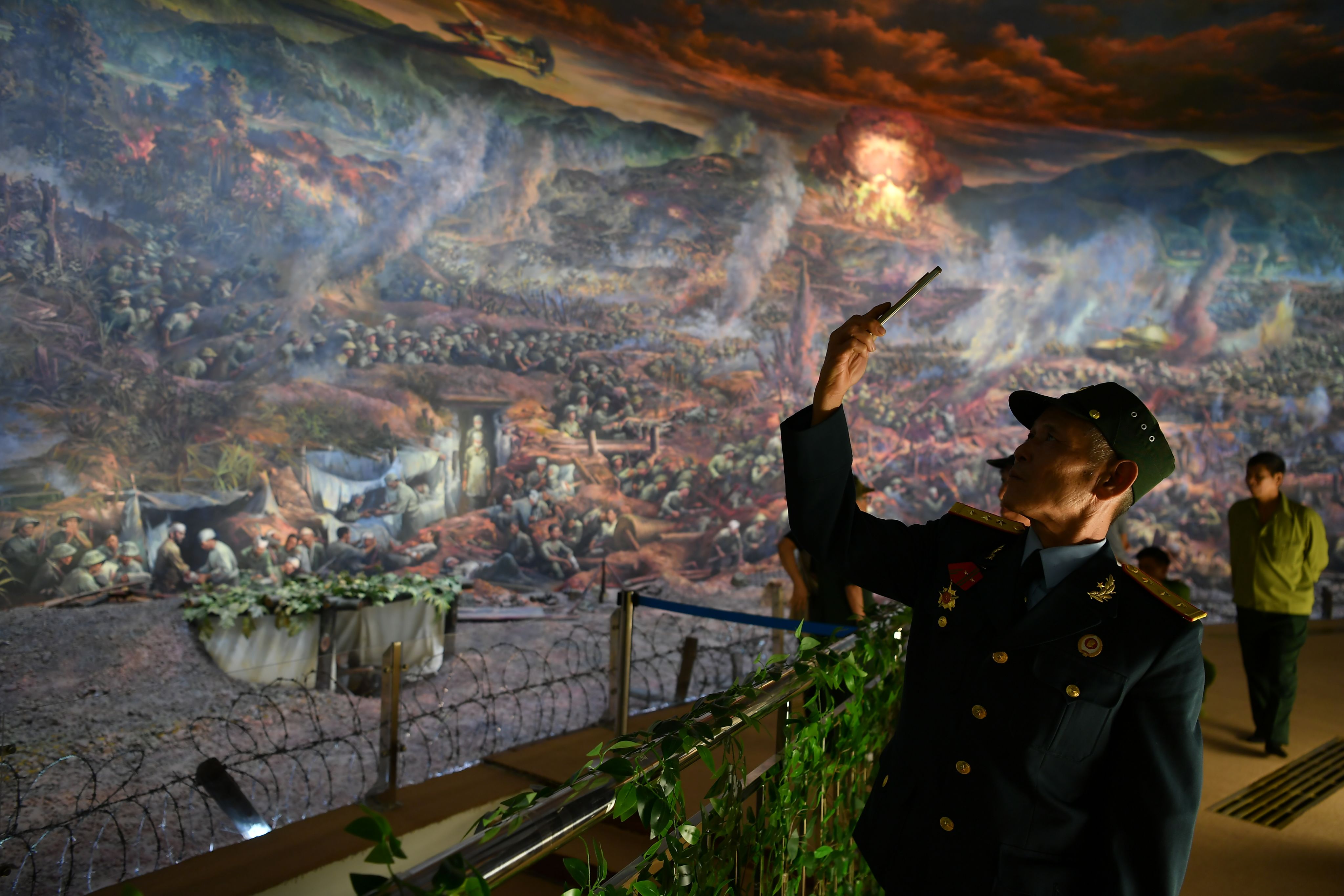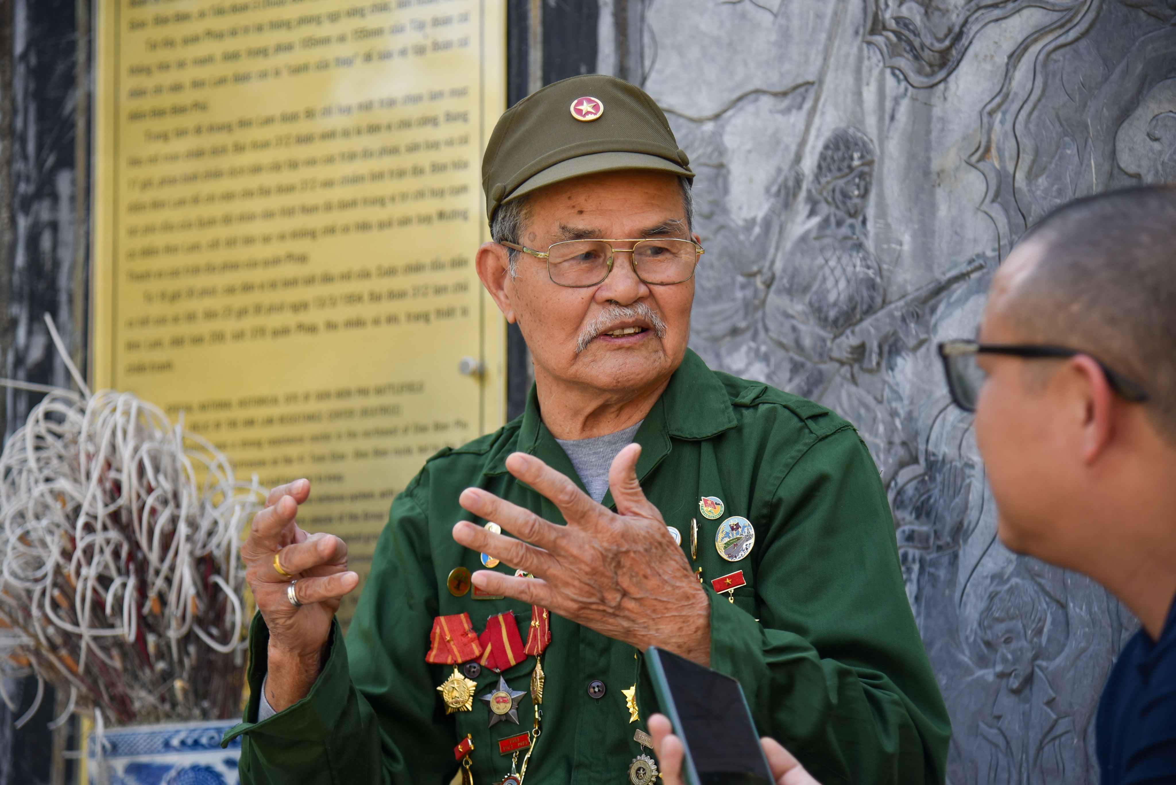 Cựu chiến binh Phạm Đức Cư hồi tưởng về những ngày trở lại Điện Biên. (ẢNH: NHẬT QUANG)