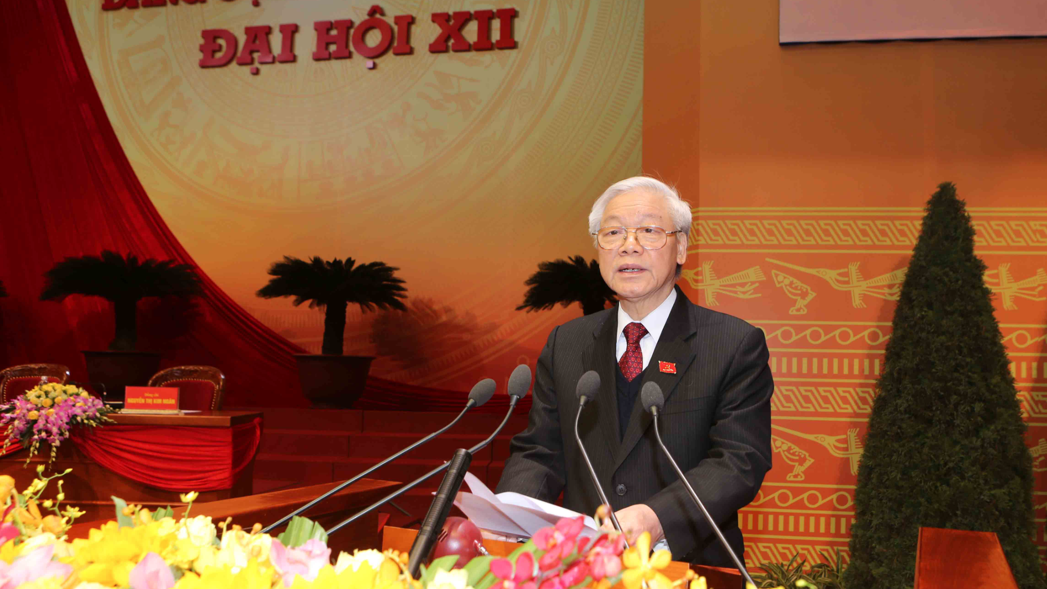 Tổng Bí thư Nguyễn Phú Trọng phát biểu tại lễ bế mạc Đại hội XII. (Ảnh: Tạp chí Tuyên giáo)