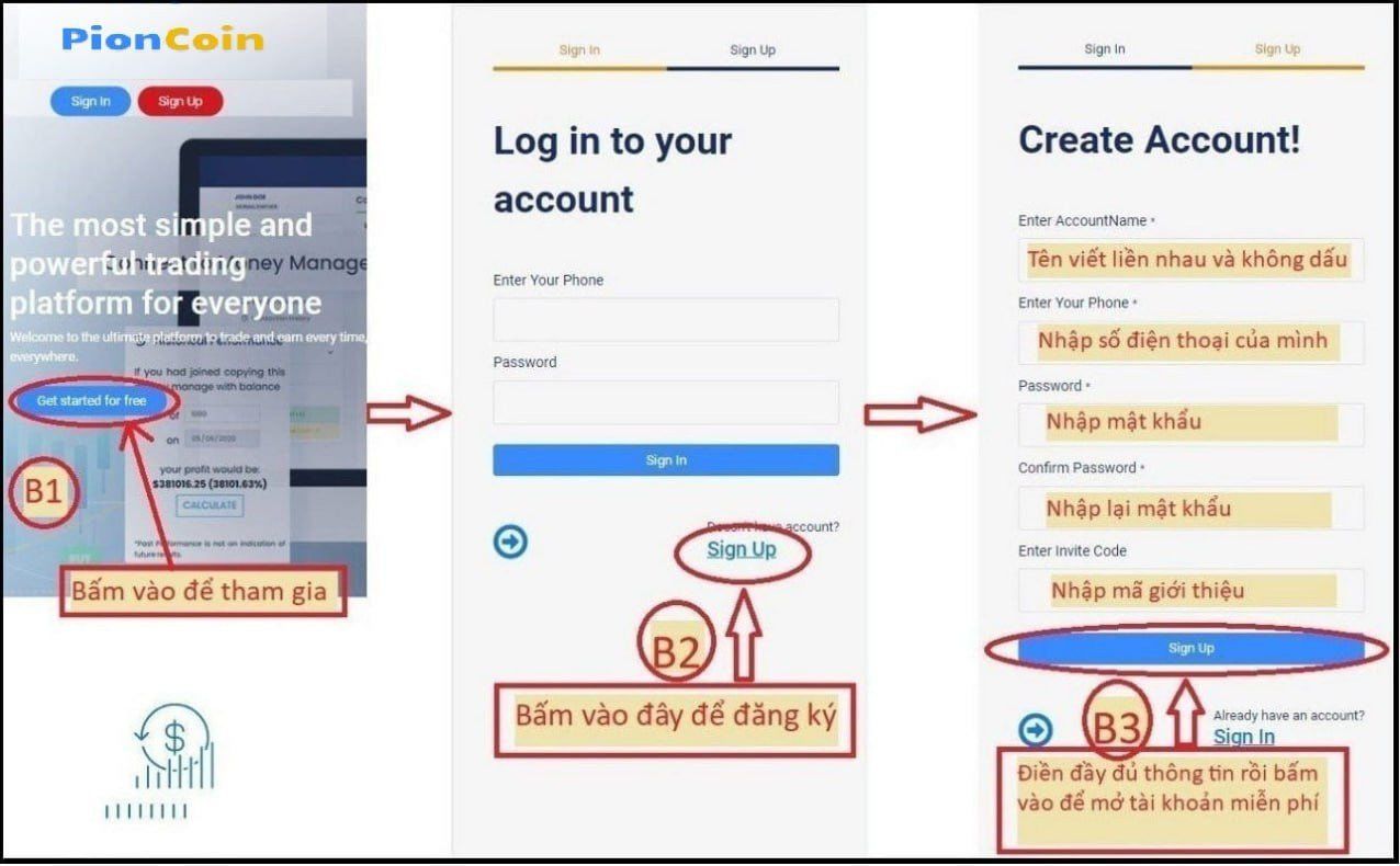 Hướng dẫn lập tài khoản htttps://pioncoins.com