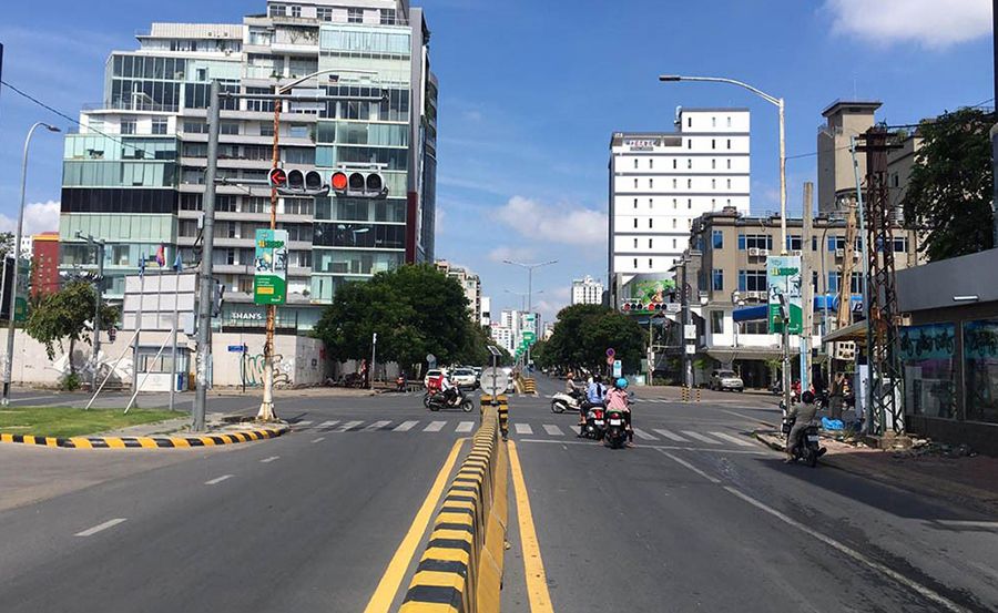 Một đại lộ chính của Phnom Penh trong thời gian phong tỏa. (Ảnh: Sơn Xinh)
