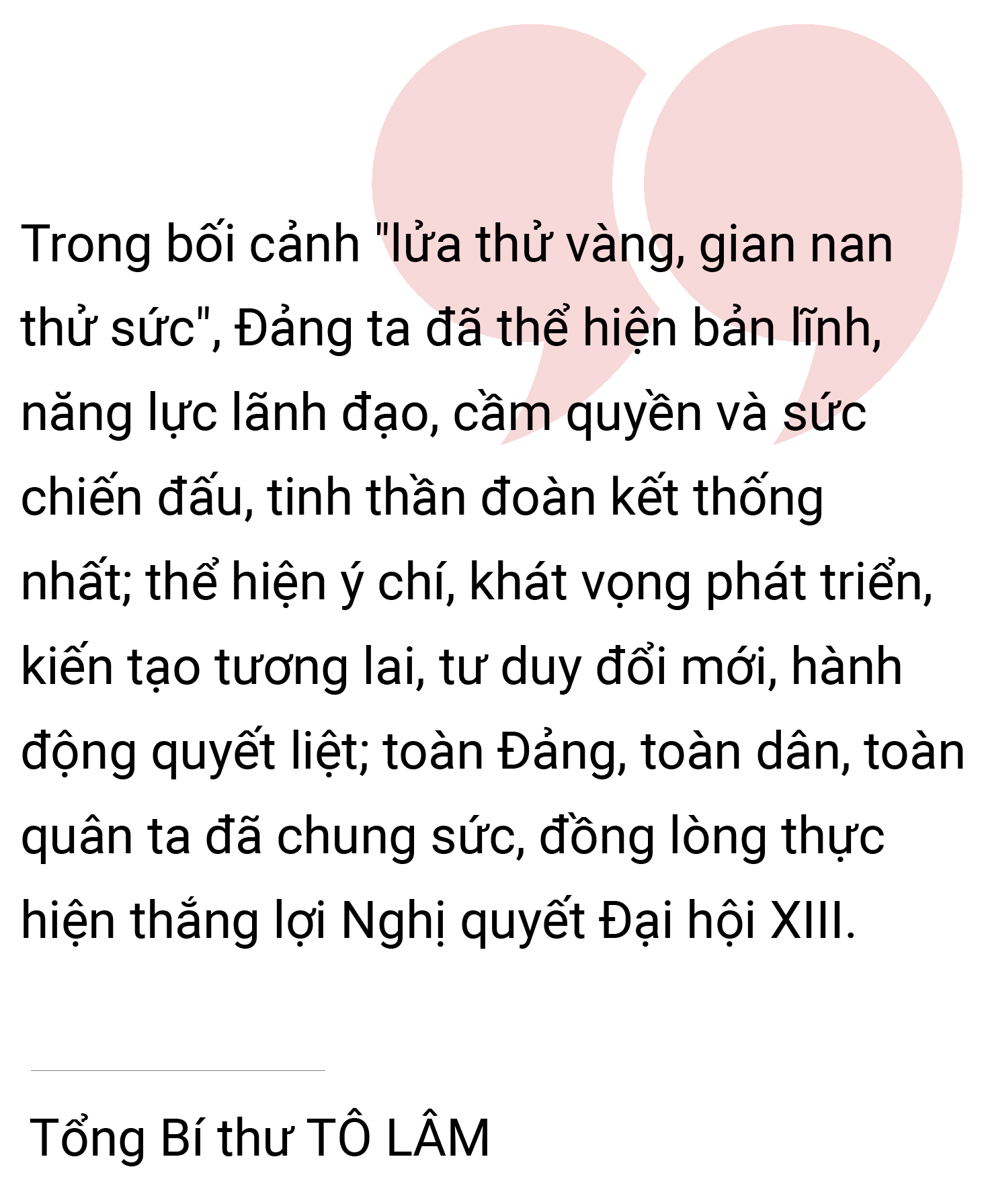 Khi thống nhất cao về tư tưởng; quyết liệt trong hành động; nghiêm minh trong kỷ luật; nhân dân thật sự là trung tâm, nhất định chúng ta sẽ biến khát vọng thành hiện thực; đưa đất nước tiến mạnh, tiến vững chắc trong kỷ nguyên vươn mình của dân tộc, tiến lên chủ nghĩa xã hội.