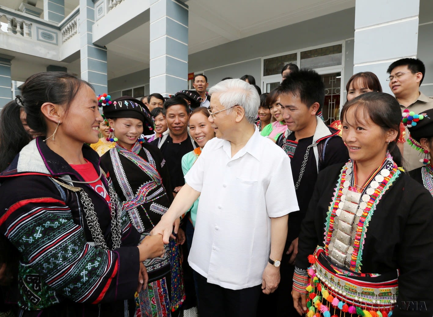 Tổng Bí thư Nguyễn Phú Trọng với đồng bào dân tộc xã nông thôn mới Bản Bo, huyện Tam Đường, Lai Châu. Ảnh: TTXVN